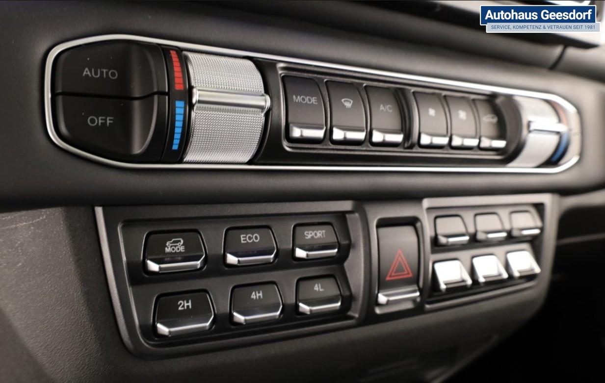 Zur Ausstattung zählen unter anderem 360° Kamera, Einparkhilfe vorne und hinten, Keyless Entry / Keyless Go, 2-Zonen-Klimaautomatik, Sitzheizung und Sitzlüftung, elektrisch verstellbare Sitze, LED-Arbeitsscheinwerfer, Seilwinde sowie elektrische Trittbretter. Damit eignet sich das Fahrzeug hervorragend für anspruchsvolle Einsätze bei jedem Wetter und auf unterschiedlichstem Untergrund.