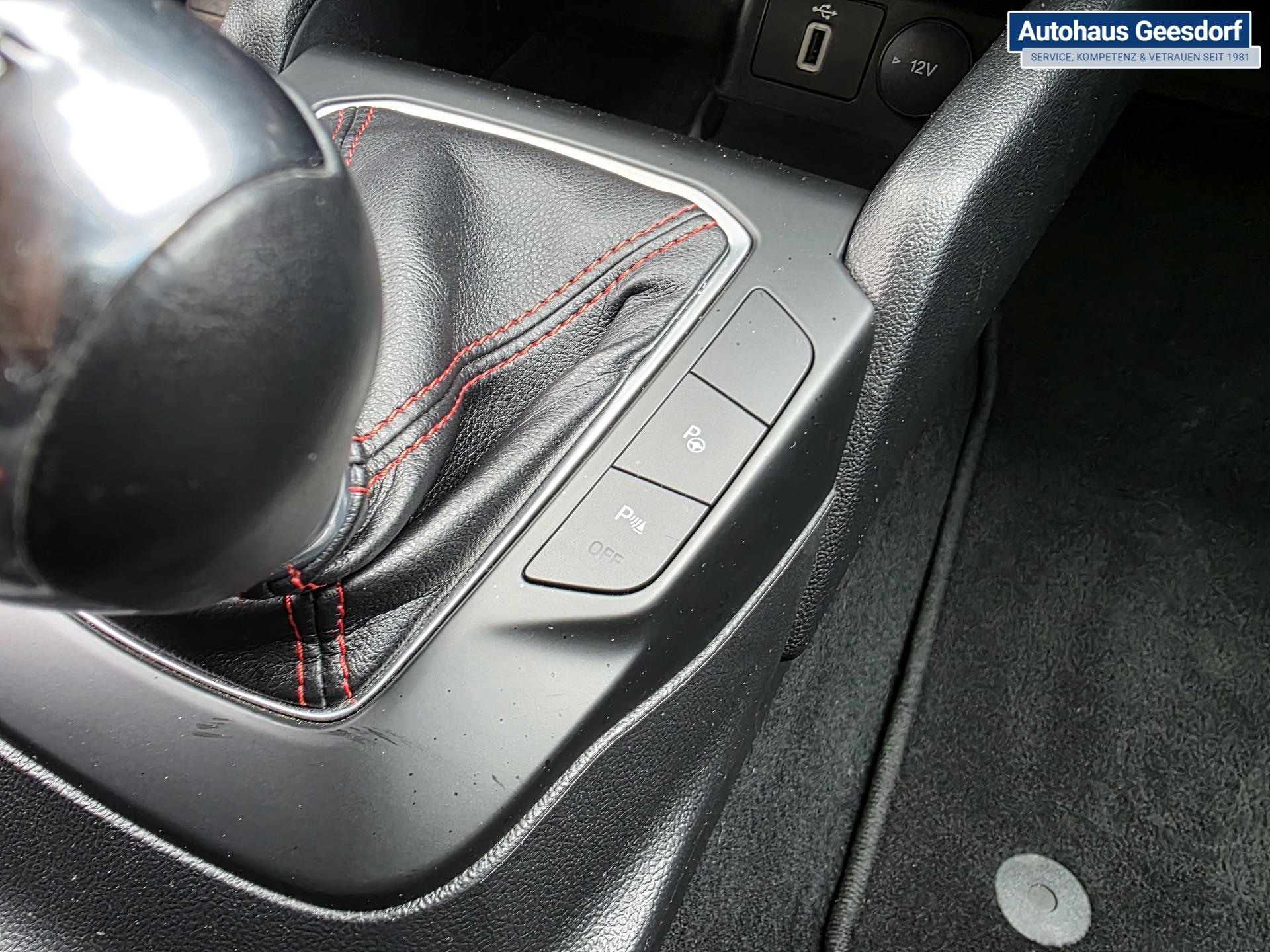 • Außen/Fahrwerk: 18" LM-Felgen mit Ganzjahresreifen, Sport-Fahrwerk, elektrische Parkbremse mit Auto-Hold, Notrad, Doppelendrohr, getönte Verglasung, Außenspiegel elektr. verstell-/heizbar und anklappbar mit integrierten Blinkern + Bodenleuchte, ST-Line Stoßfänger/Spoiler/Schweller, Nebelscheinwerfer LED mit Abbiegelicht