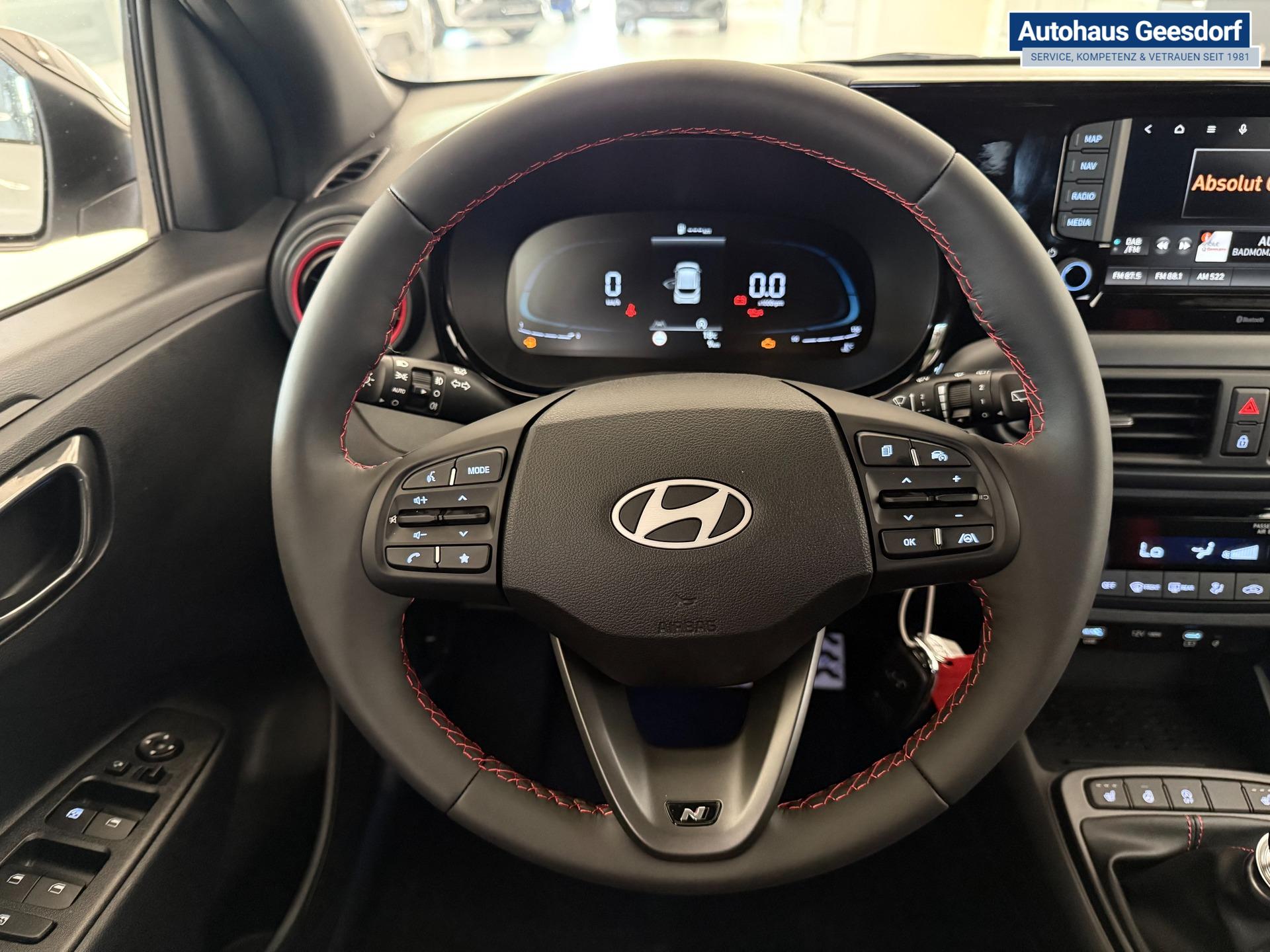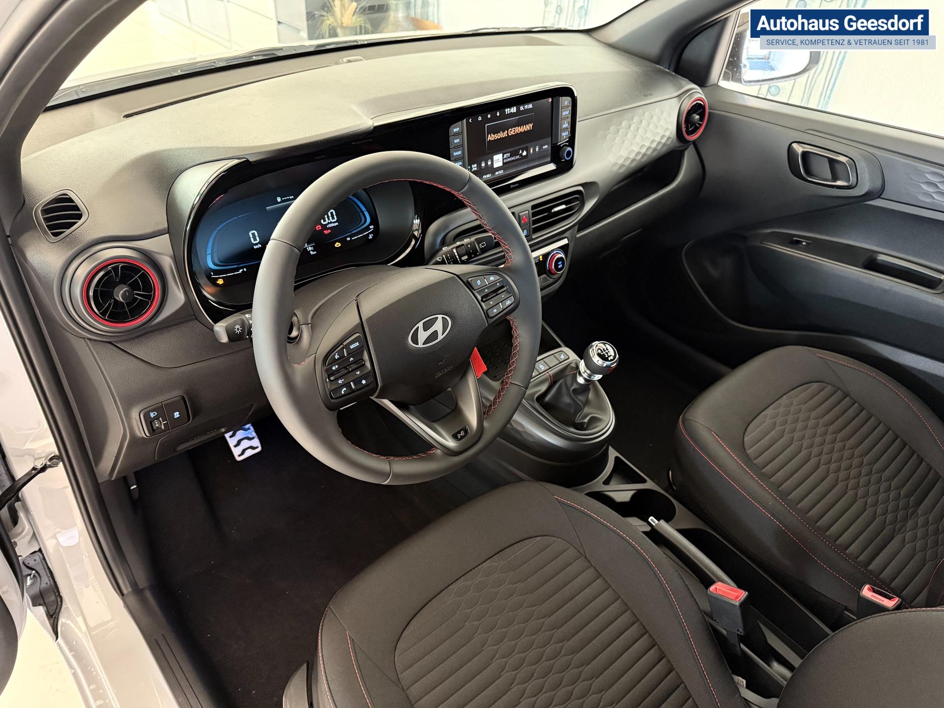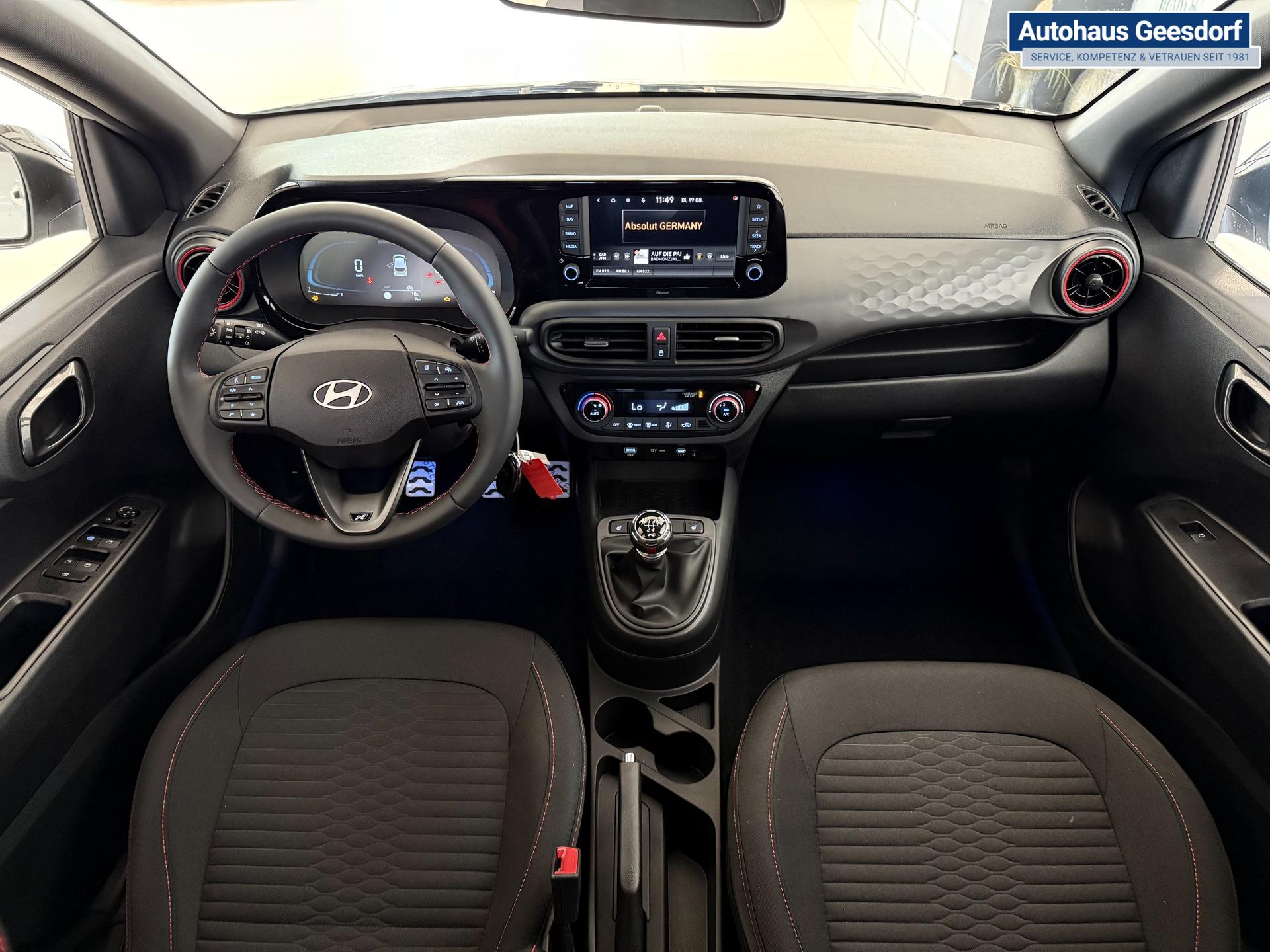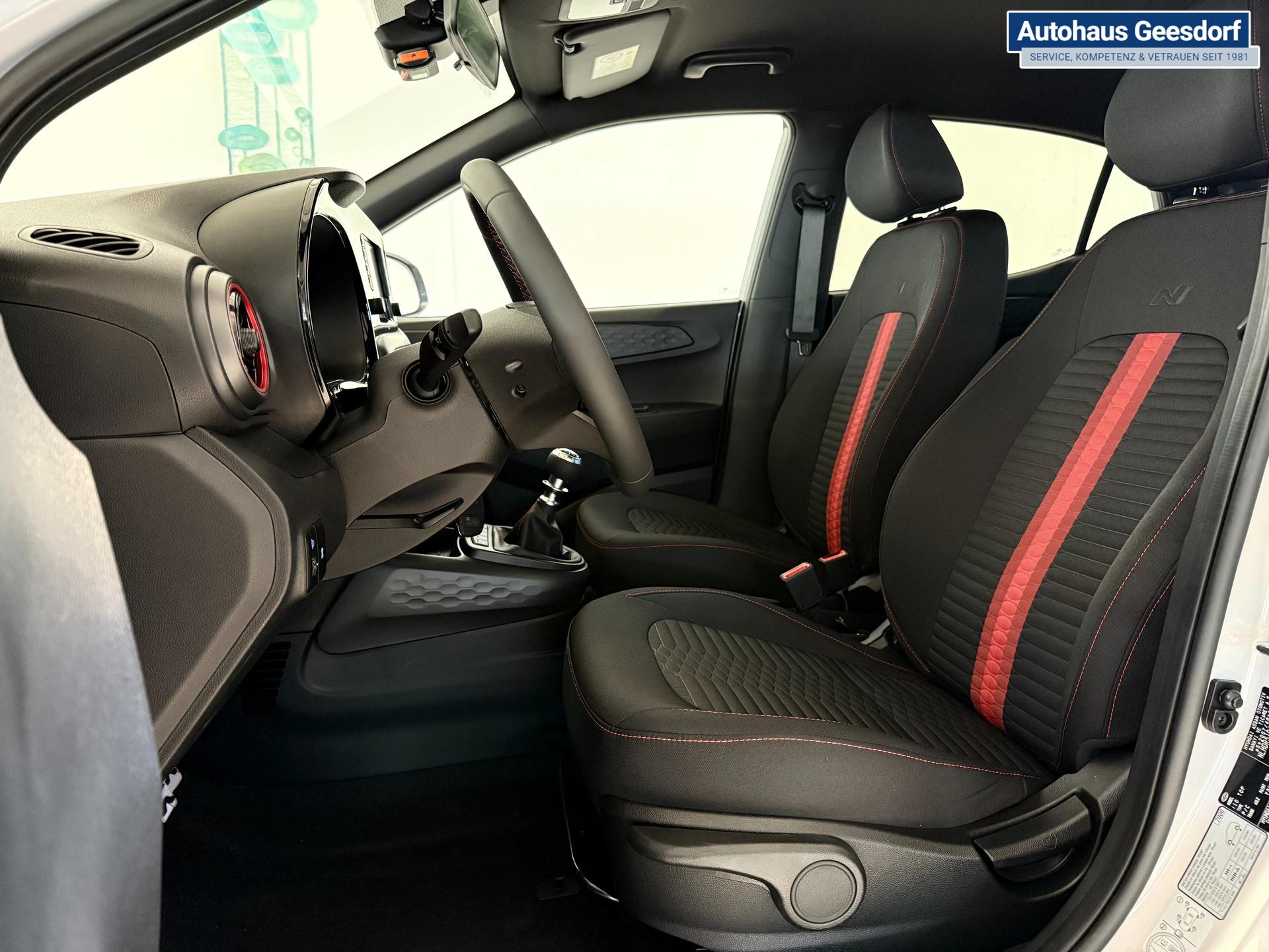 Hyundai i10 N Line 1.0 T-GDI 66 kW (90 PS) Interieur-Paket, Lenkradheizung, Sitzheizung, Klimaautomatik, Radio, DAB, Apple CarPlay, Android Auto, Navigationssystem, Rückfahrkamera, Verkehrszeichenerkennung, Tempomat, 16 Zoll Leichtmetallfelgen, uvm.