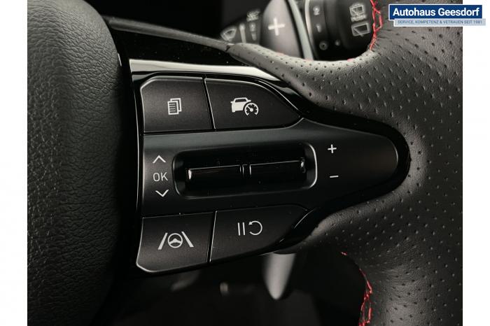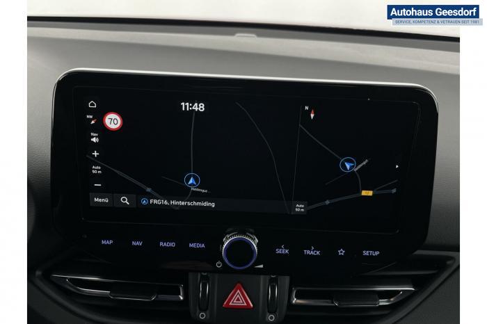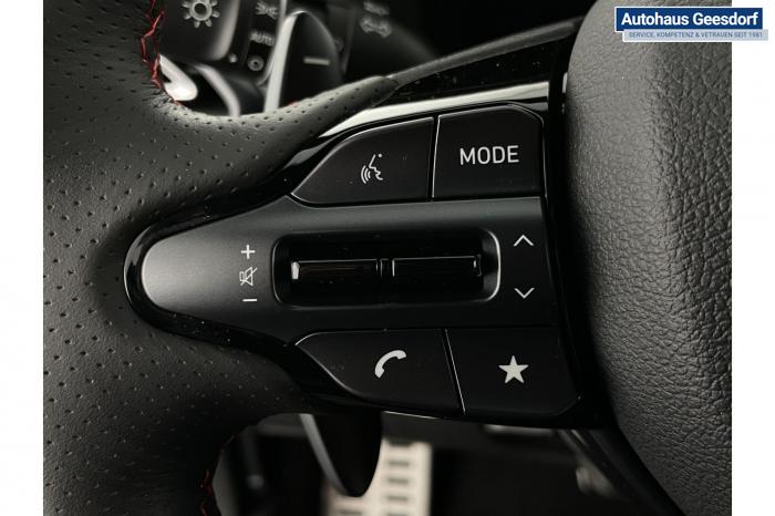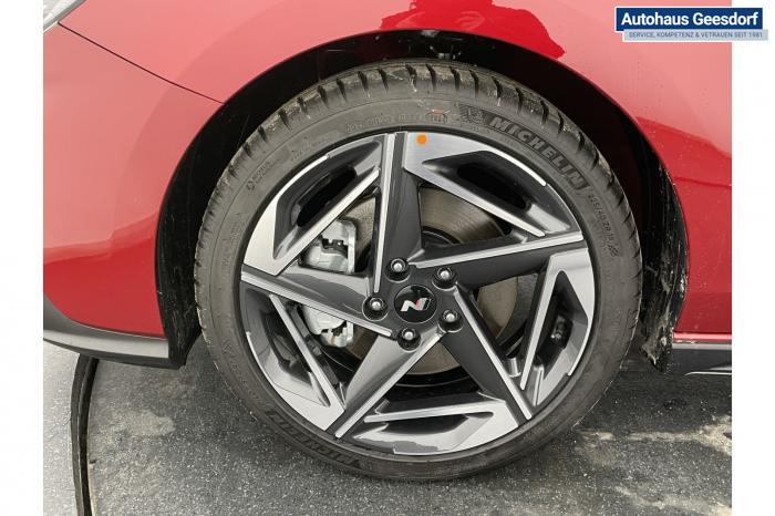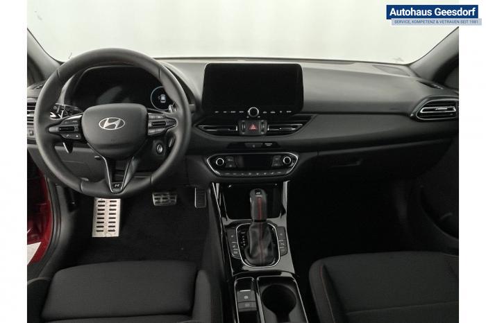 Android Auto, Apple CarPlay, Bluetooth, Navigationssystem 10,25'', Sprachsteuerung, USB-Anschluss, Bi-LED-Scheinwerfer, LED Tagfahrlicht, LED-Rückleuchten, Lichtsensor, Elektrische Fensterhebern vorn und hinten, Getönte Scheiben, Dachhimmel in Schwarz, Gepäcktrennnetz, Lenkradheizung, Mittelarmlehne vorn und hinten, Spiegel automatisch abblendbar, Sport - Multifunktionslenkrad, Sport-Pedale in Edelstahl, Automatische Zweizonen - Klimaregelung , 18'' Alufelgen der Größe 225/40 R18, Alarmanlage, Elektrische Parkbremse mit AutoHold, Fahrer- und Beifahrerairbag, ISOFIX + TopTether, Vorder- und Seitenaribags, Beifahrersitz höhenverstellbar, Fahrersitz höhenverstellbar, Fahrersitz mit elektrischer Lendenwirbelstütze, Vordersitze beheizbar, Hyundai Garantie 5 Jahre, Aktiver Spurfolgeassistent LFA, Autonomer Notbremsassistent, Berganfahrassistent HAC, Fahrprofilauswahl, Frontkollisionswarner mit Fußgänger-/Fahrradfahrererken-nung FCA, Intelligente Geschwindigkeitsassistent ISLA, Park Distance Control vorne und hinten, Reifendruck-Kontrollsystem, Rückfahrkamera, Spurhalteassistent LKA, Tempomat, Zentralverriegelung mit Fernbedienung, [ISLA] adaptive Geschwindigkeitsregelanlage, Start/Stopp-Automatik, Außenspiegel elektrisch anklappbar, Außenspiegel elektrisch beheizbar, Außenspiegel elektrisch einstellbar, Außenspiegelgehäuse in Schwarz, Dachreling, EU-Fahrzeug mit Tageszulassung