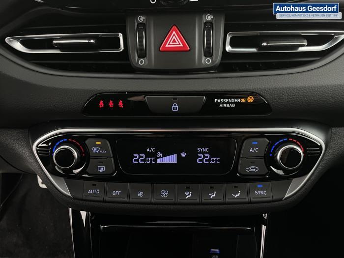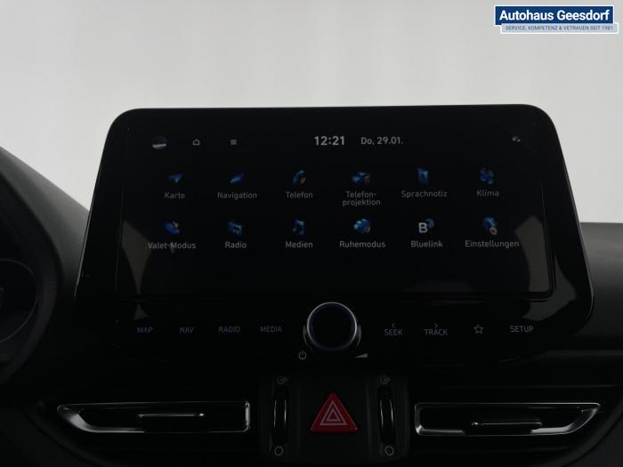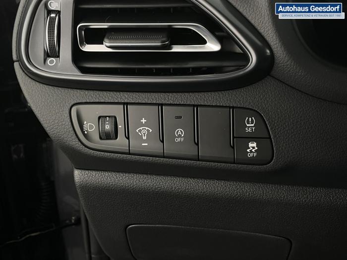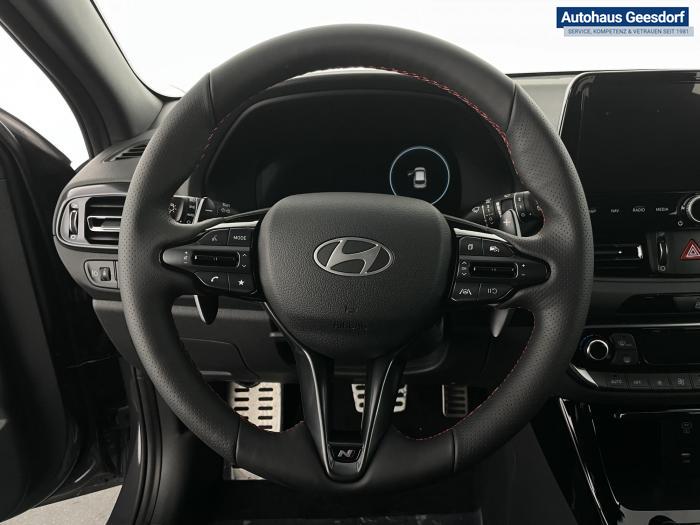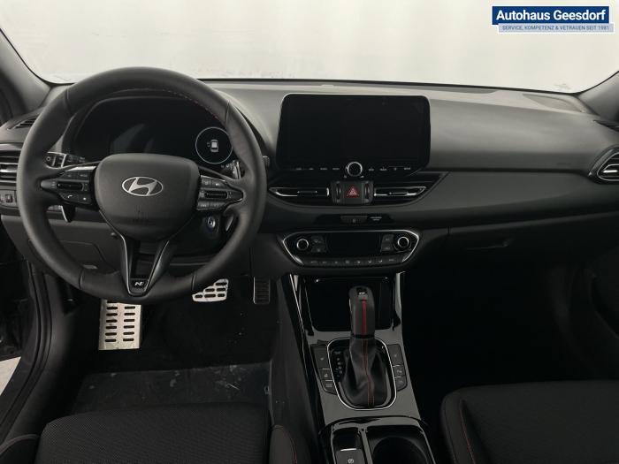 Android Auto, Apple CarPlay, Bluetooth, Navigationssystem 10,25'', Sprachsteuerung, USB-Anschluss, Bi-LED-Scheinwerfer, LED Tagfahrlicht, LED-Rückleuchten, Lichtsensor, Elektrische Fensterhebern vorn und hinten, Getönte Scheiben, Dachhimmel in Schwarz, Gepäcktrennnetz, Lenkradheizung, Mittelarmlehne vorn und hinten, Spiegel automatisch abblendbar, Sport - Multifunktionslenkrad, Sport-Pedale in Edelstahl, Automatische Zweizonen - Klimaregelung , 18'' Alufelgen der Größe 225/40 R18, Alarmanlage, Elektrische Parkbremse mit AutoHold, Fahrer- und Beifahrerairbag, ISOFIX + TopTether, Vorder- und Seitenaribags, Beifahrersitz höhenverstellbar, Fahrersitz höhenverstellbar, Fahrersitz mit elektrischer Lendenwirbelstütze, Vordersitze beheizbar, Hyundai Garantie 5 Jahre, Aktiver Spurfolgeassistent LFA, Autonomer Notbremsassistent, Berganfahrassistent HAC, Fahrprofilauswahl, Frontkollisionswarner mit Fußgänger-/Fahrradfahrererken-nung FCA, Intelligente Geschwindigkeitsassistent ISLA, Park Distance Control vorne und hinten, Reifendruck-Kontrollsystem, Rückfahrkamera, Spurhalteassistent LKA, Tempomat, Zentralverriegelung mit Fernbedienung, [ISLA] adaptive Geschwindigkeitsregelanlage, Start/Stopp-Automatik, Außenspiegel elektrisch anklappbar, Außenspiegel elektrisch beheizbar, Außenspiegel elektrisch einstellbar, Außenspiegelgehäuse in Schwarz, Dachreling, EU-Fahrzeug mit Tageszulassung