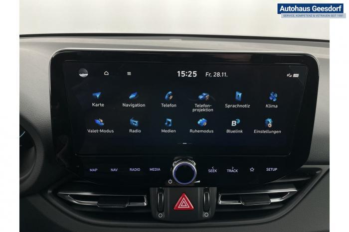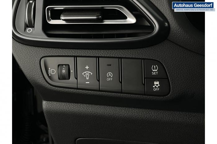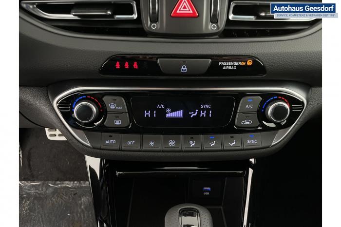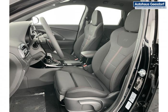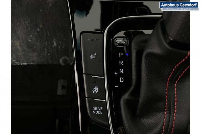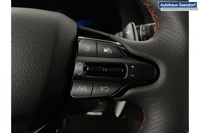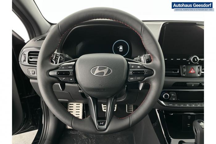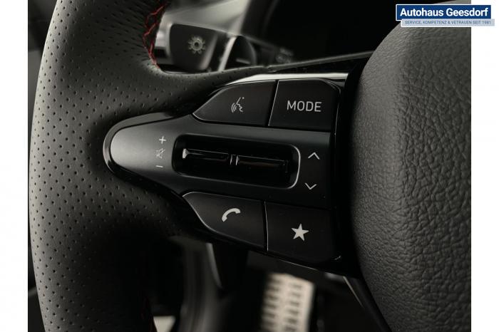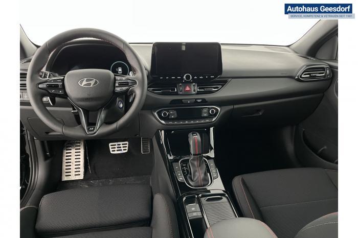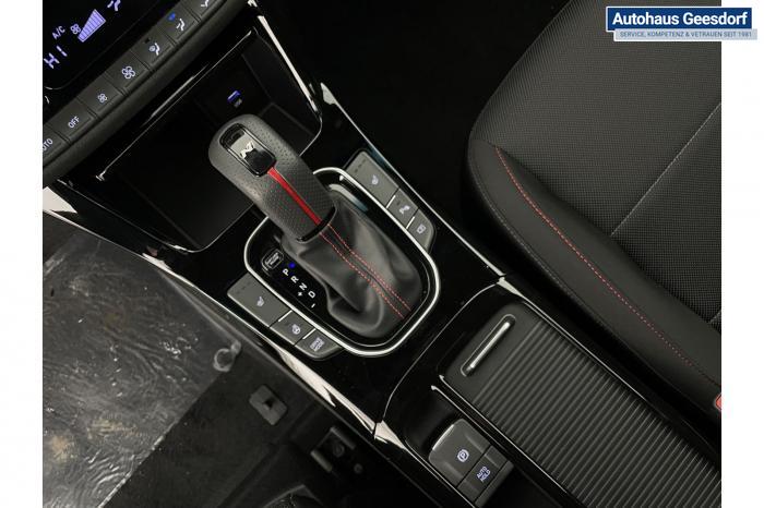 Android Auto, Apple CarPlay, Bluetooth, Navigationssystem 10,25'', Sprachsteuerung, USB-Anschluss, Bi-LED-Scheinwerfer, LED Tagfahrlicht, LED-Rückleuchten, Lichtsensor, Elektrische Fensterhebern vorn und hinten, Getönte Scheiben, Dachhimmel in Schwarz, Gepäcktrennnetz, Lenkradheizung, Mittelarmlehne vorn und hinten, Spiegel automatisch abblendbar, Sport - Multifunktionslenkrad, Sport-Pedale in Edelstahl, Automatische Zweizonen - Klimaregelung , 18'' Alufelgen der Größe 225/40 R18, Alarmanlage, Elektrische Parkbremse mit AutoHold, Fahrer- und Beifahrerairbag, ISOFIX + TopTether, Vorder- und Seitenaribags, Beifahrersitz höhenverstellbar, Fahrersitz höhenverstellbar, Fahrersitz mit elektrischer Lendenwirbelstütze, Vordersitze beheizbar, Hyundai Garantie 5 Jahre, Aktiver Spurfolgeassistent LFA, Autonomer Notbremsassistent, Berganfahrassistent HAC, Fahrprofilauswahl, Frontkollisionswarner mit Fußgänger-/Fahrradfahrererken-nung FCA, Intelligente Geschwindigkeitsassistent ISLA, Park Distance Control vorne und hinten, Reifendruck-Kontrollsystem, Rückfahrkamera, Spurhalteassistent LKA, Tempomat, Zentralverriegelung mit Fernbedienung, [ISLA] adaptive Geschwindigkeitsregelanlage, Start/Stopp-Automatik, Außenspiegel elektrisch anklappbar, Außenspiegel elektrisch beheizbar, Außenspiegel elektrisch einstellbar, Außenspiegelgehäuse in Schwarz, Dachreling, EU-Fahrzeug mit Tageszulassung