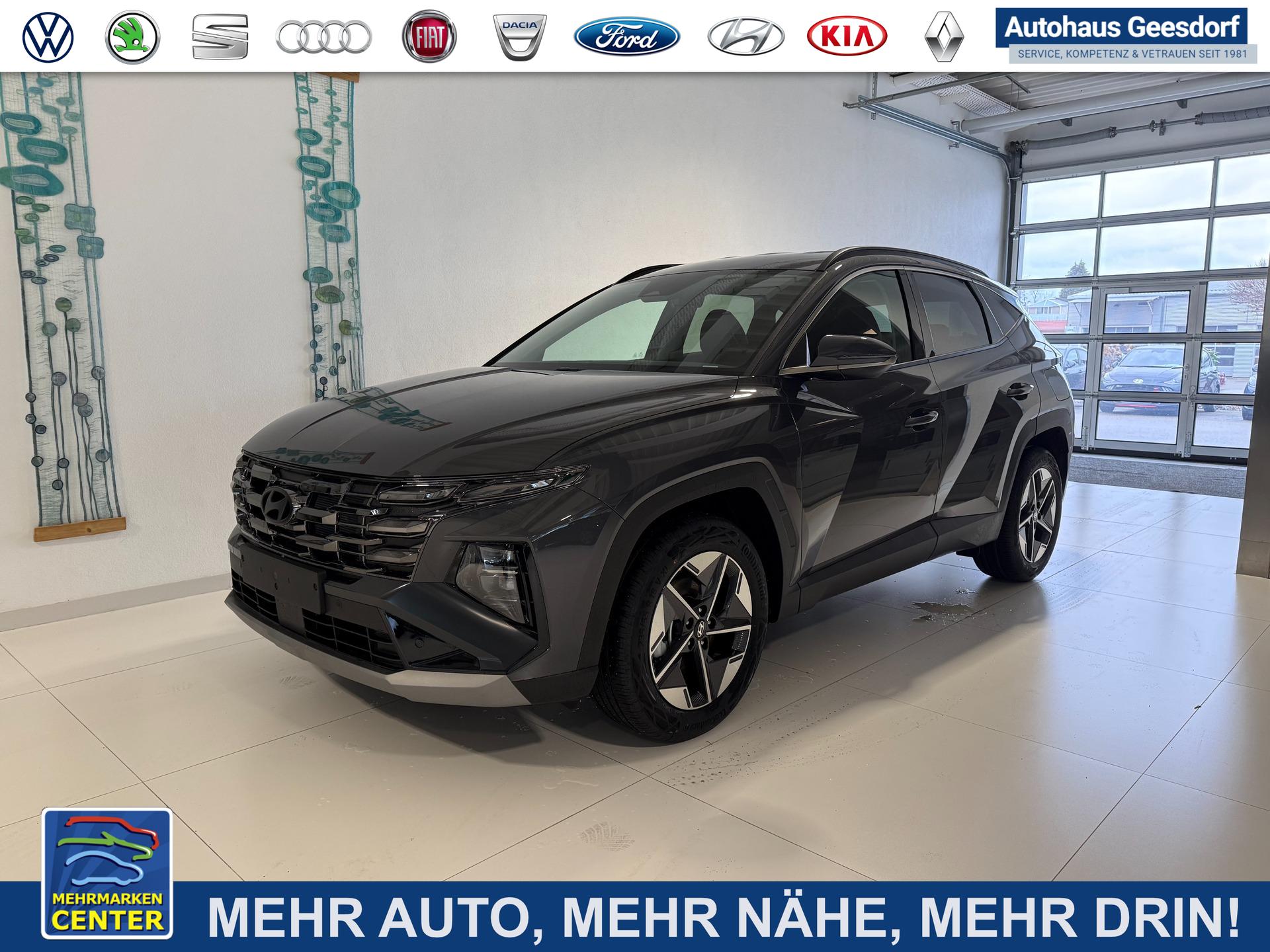 Hyundai TUCSON GO+ 1.6 T-GDI 2WD DCT 110 kW (150 PS) 2-Zonen-Klimaautomatik, Sitzheizung, Lenkradheizung, Navigationssystem, DAB, Android Auto, Apple CarPlay, Rückfahrkamera, Einparkhilfe vorne und hinten, 18 Zoll Leichtmetallfelgen, uvm.