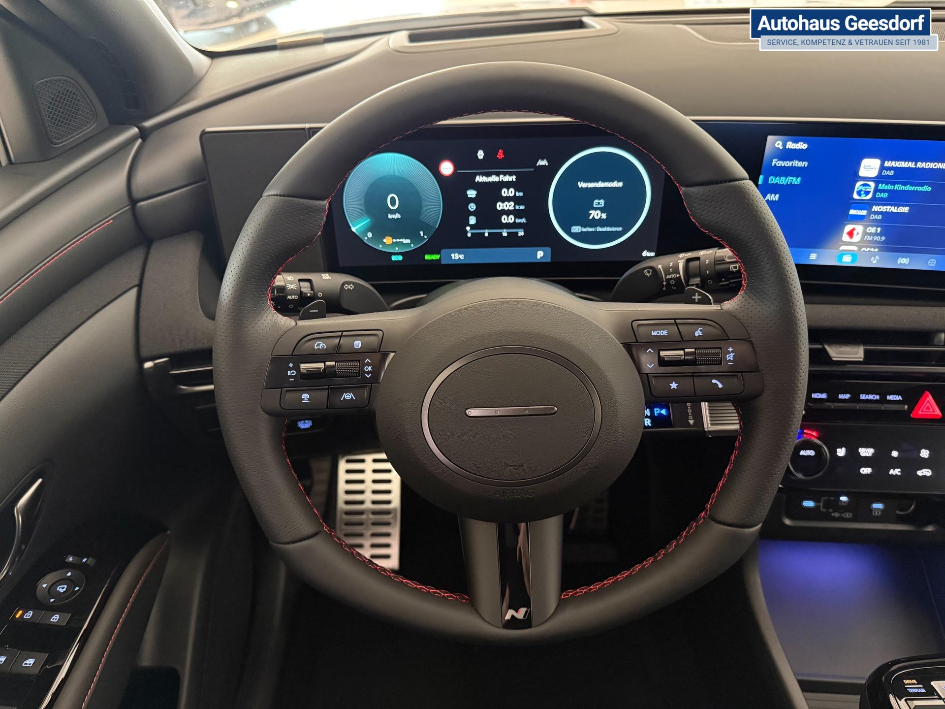 Hyundai TUCSON N Line 1.6 T-GDI Hybrid 4WD AT 176kW / 239PS 2-Zonen-Klimaautomatik, Sitzheizung, Lenkradheizung, Navigationssystem, DAB, Android Auto, Apple CarPlay, Rückfahrkamera, Head-up Display, Krell Sound System, 19 Zoll Leichtmetallfelgen, uvm.