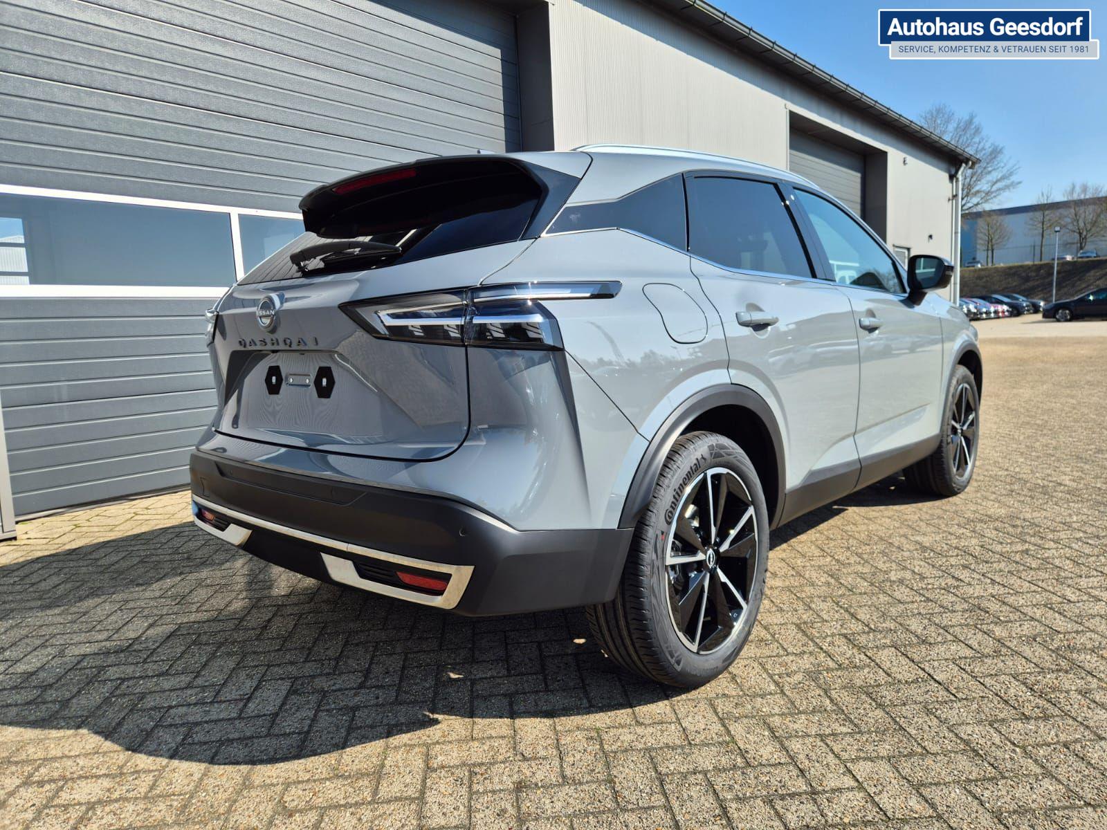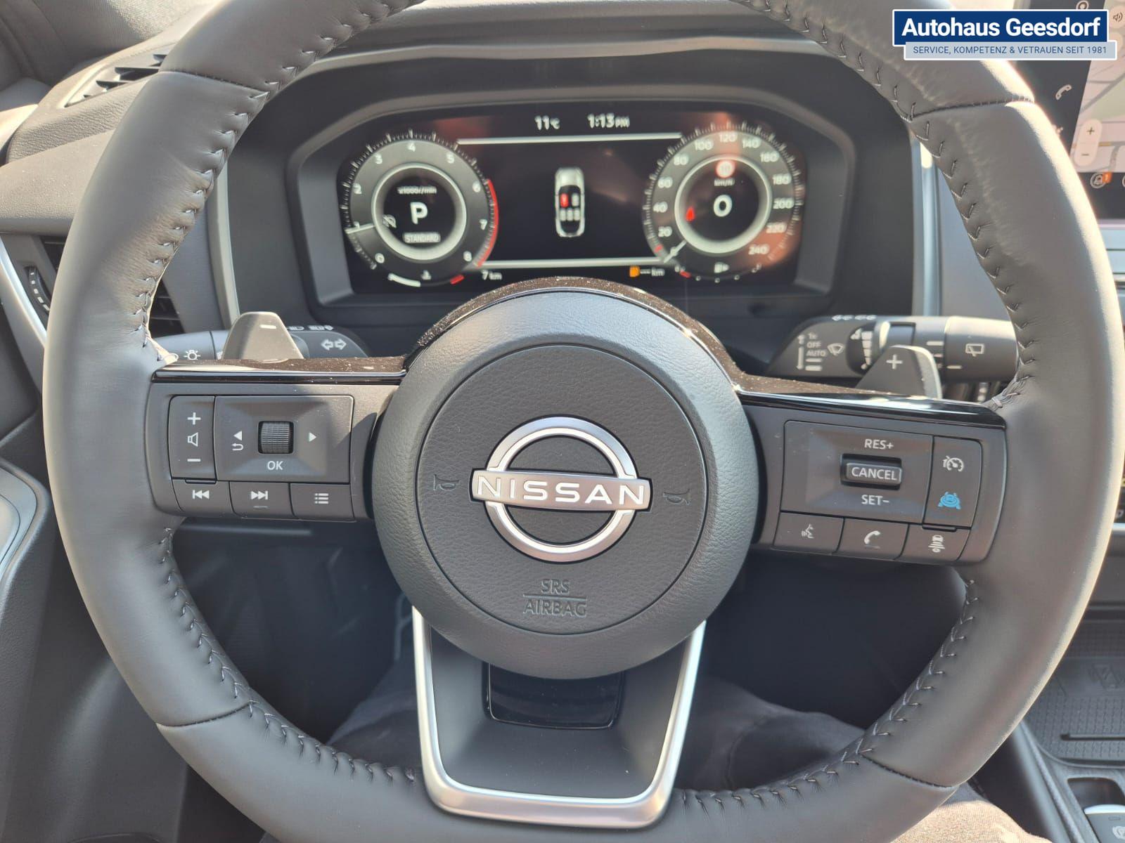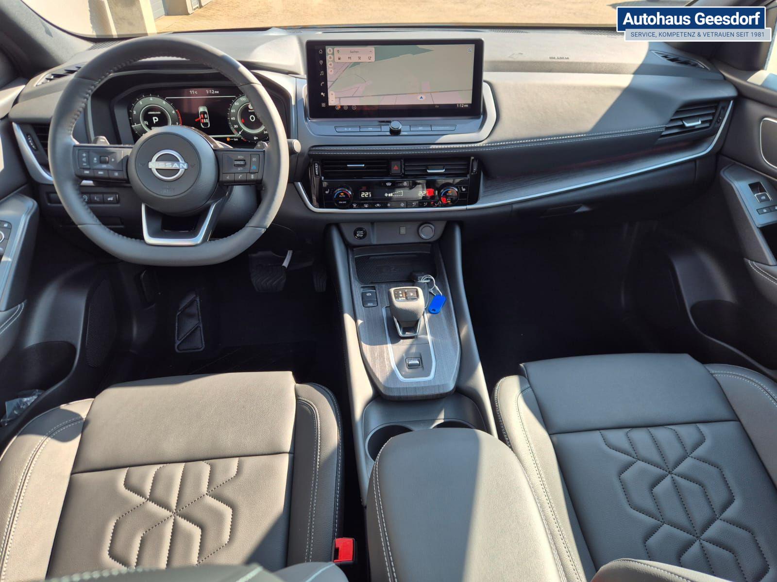 Nissan Qashqai 1.3 DIG-T MHEV 158 PS X-Tronic Tekna Voll-Leder Klimaautomatik PanoGlasdach Sitzheizung Lenkradheizung Navi Head-Up Display elektr. Heckklappe ACC PDC v+h 360°Kamera DAB Bluetooth Touchscreen Apple CarPlay Android Auto 19"LM