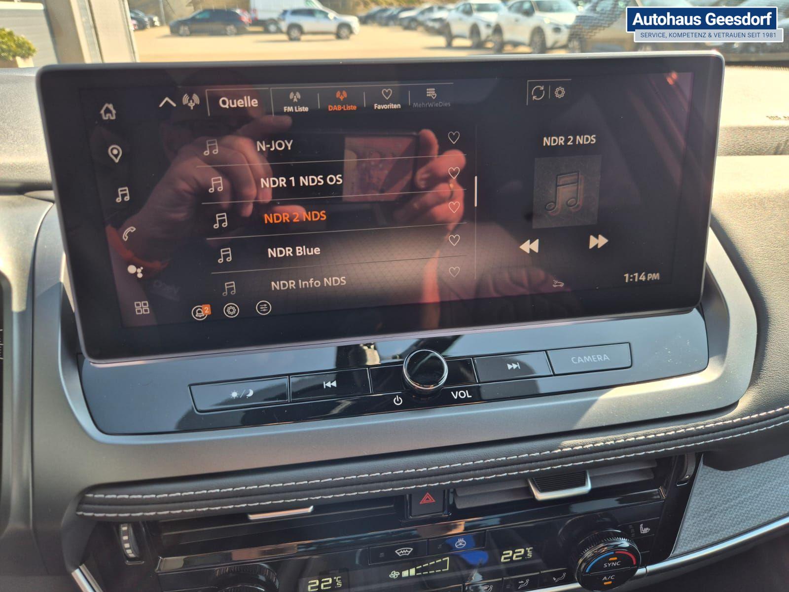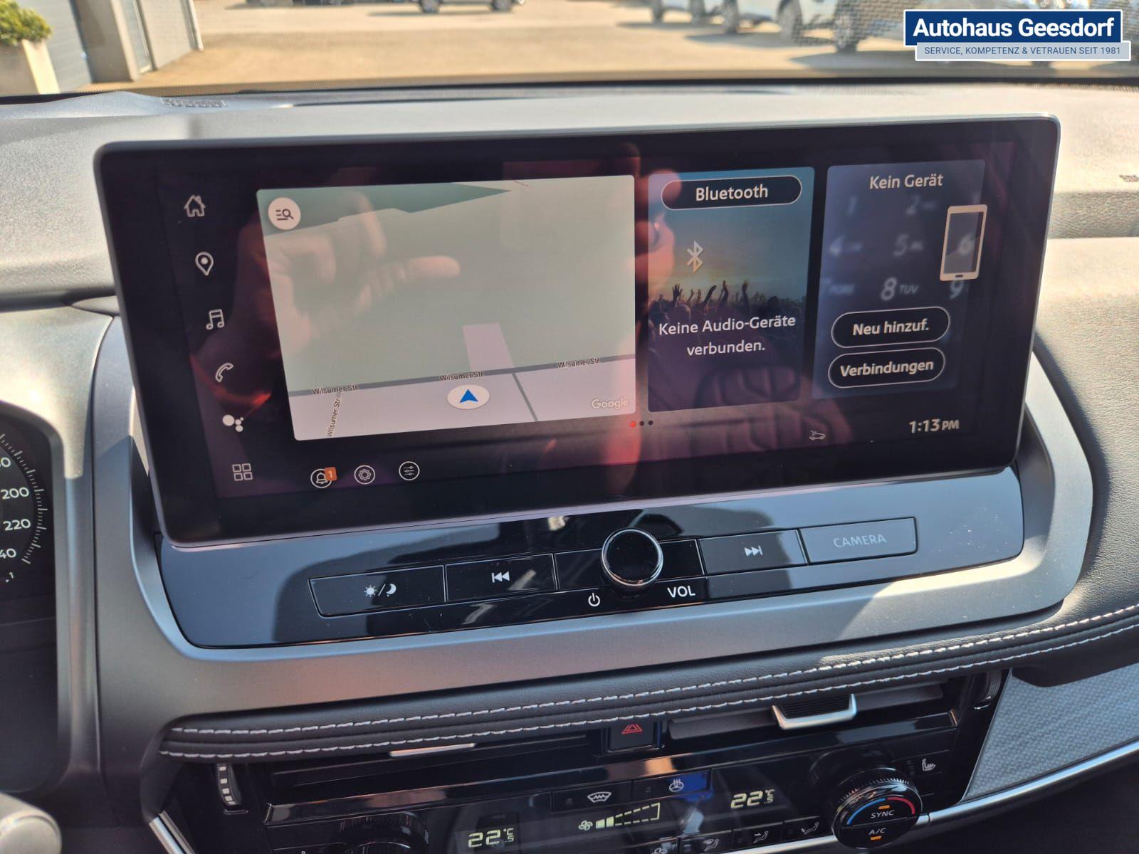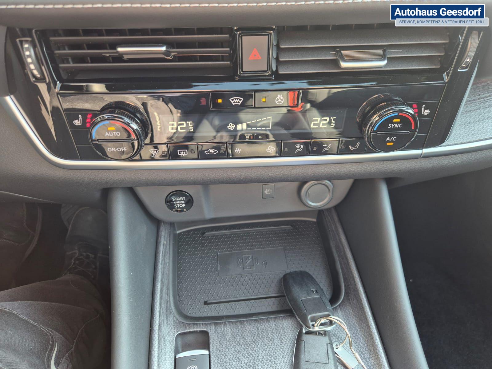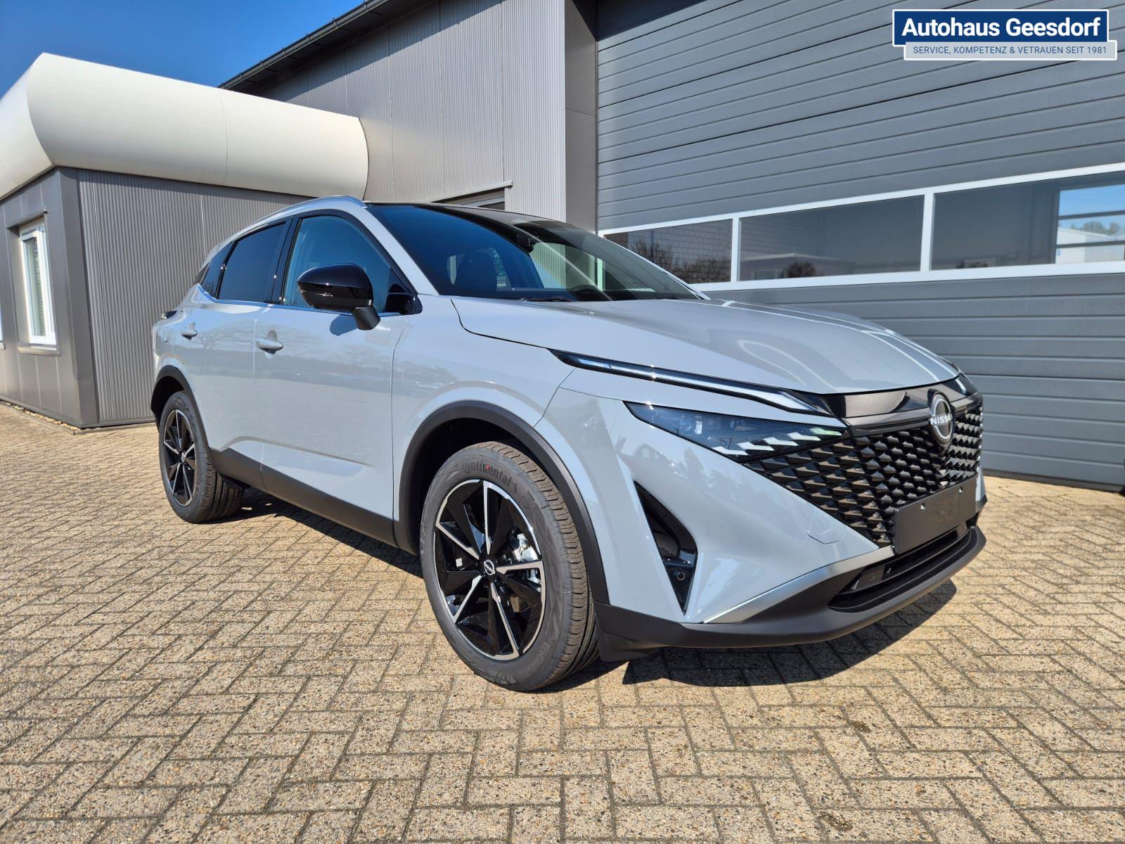 Nissan Qashqai 1.3 DIG-T MHEV 158 PS X-Tronic Tekna Voll-Leder Klimaautomatik PanoGlasdach Sitzheizung Lenkradheizung Navi Head-Up Display elektr. Heckklappe ACC PDC v+h 360°Kamera DAB Bluetooth Touchscreen Apple CarPlay Android Auto 19"LM