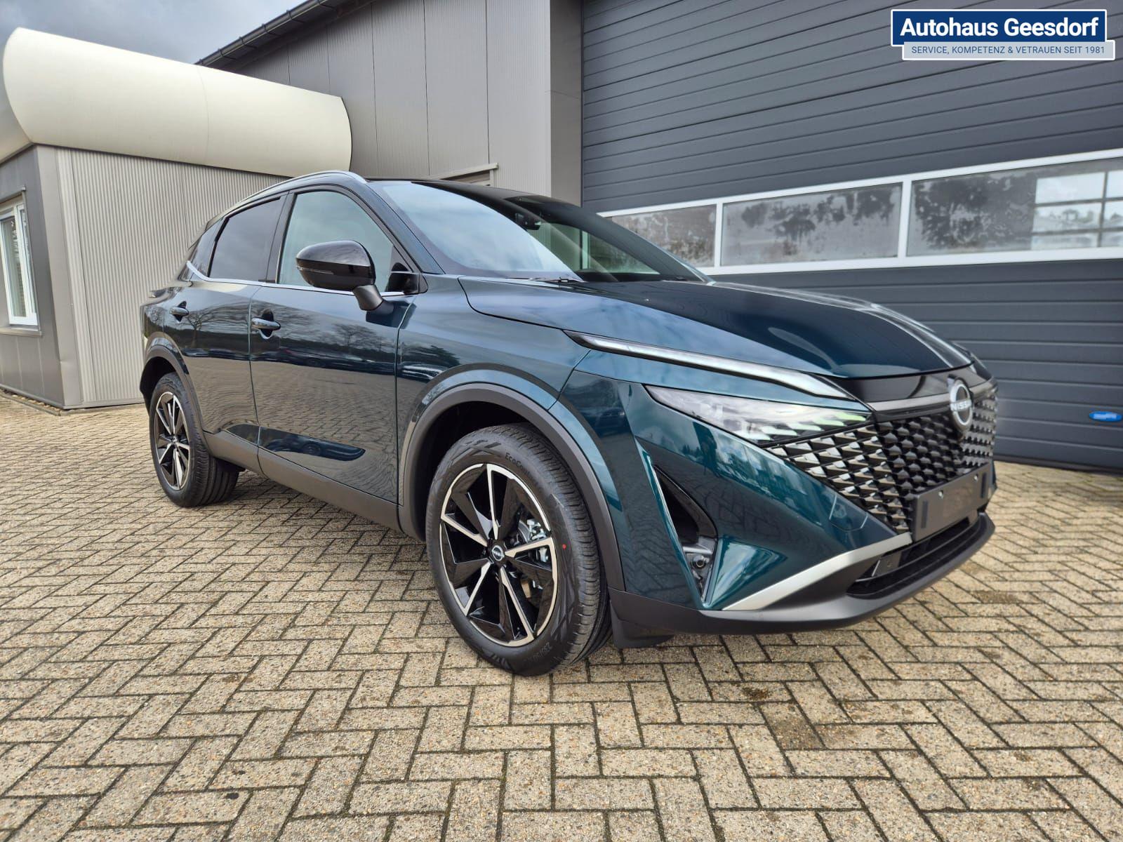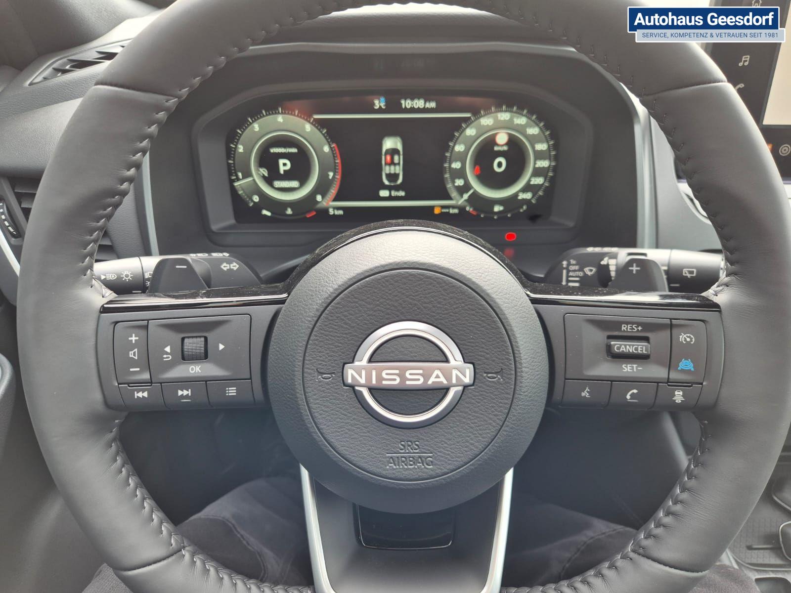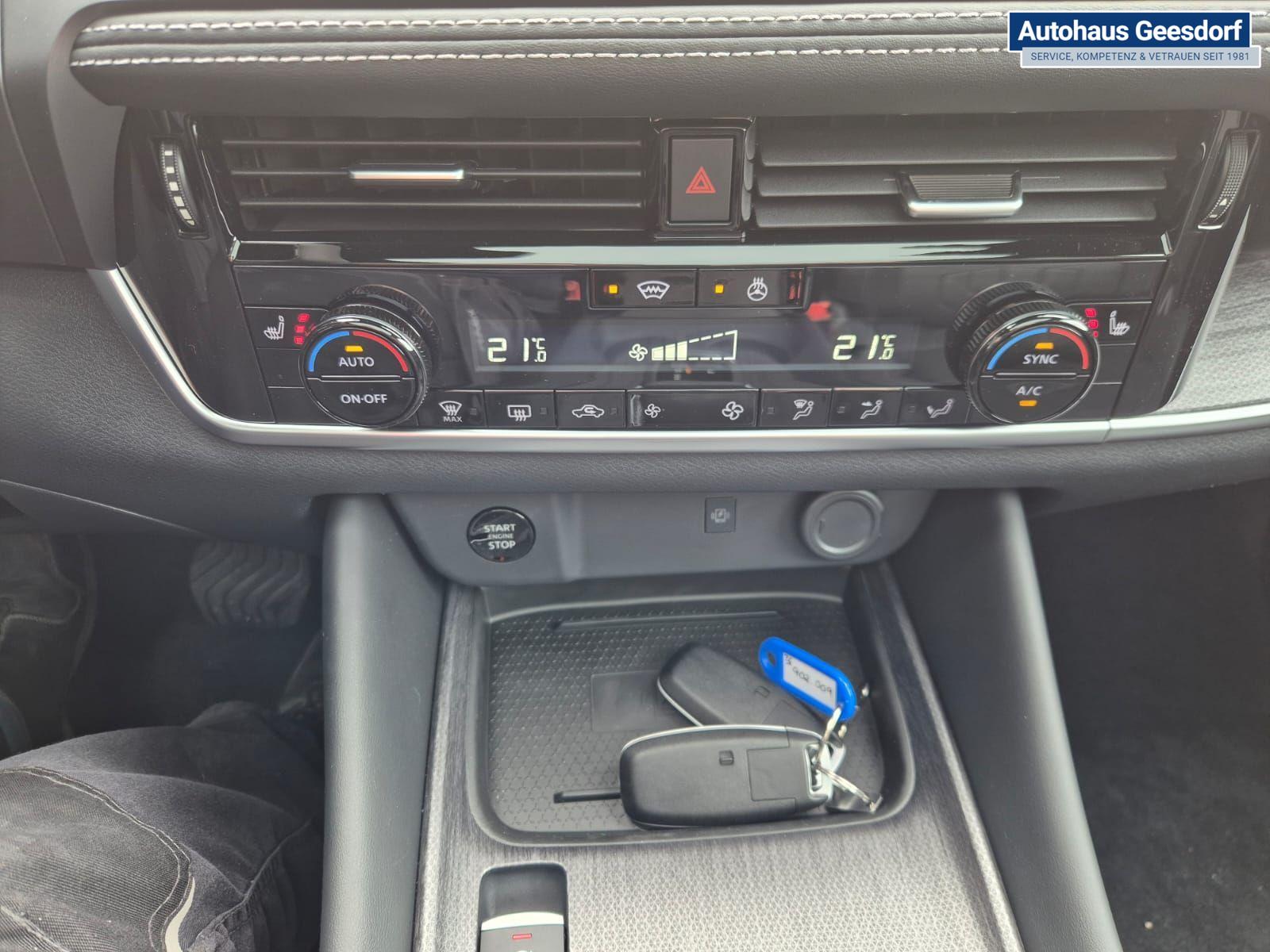 Nissan Qashqai 1.3 DIG-T MHEV 158 PS X-Tronic Tekna Voll-Leder Klimaautomatik PanoGlasdach Sitzheizung Lenkradheizung Navi Head-Up Display elektr. Heckklappe ACC PDC v+h 360°Kamera DAB Bluetooth Touchscreen Apple CarPlay Android Auto 19"LM