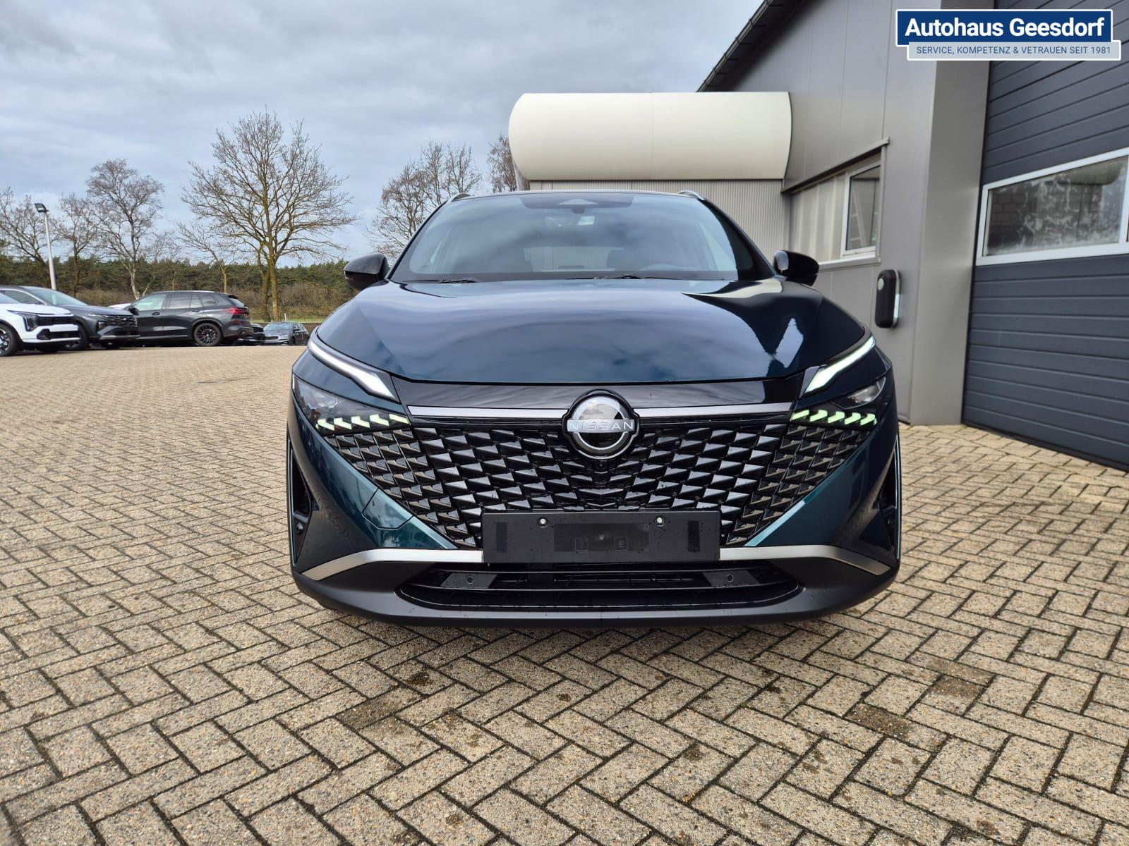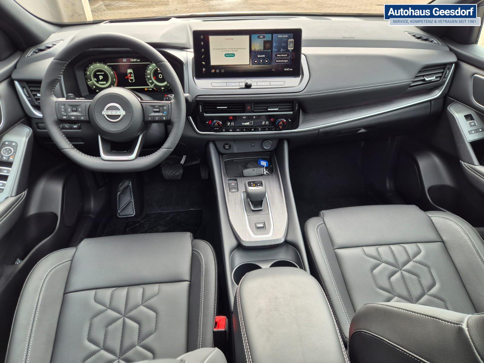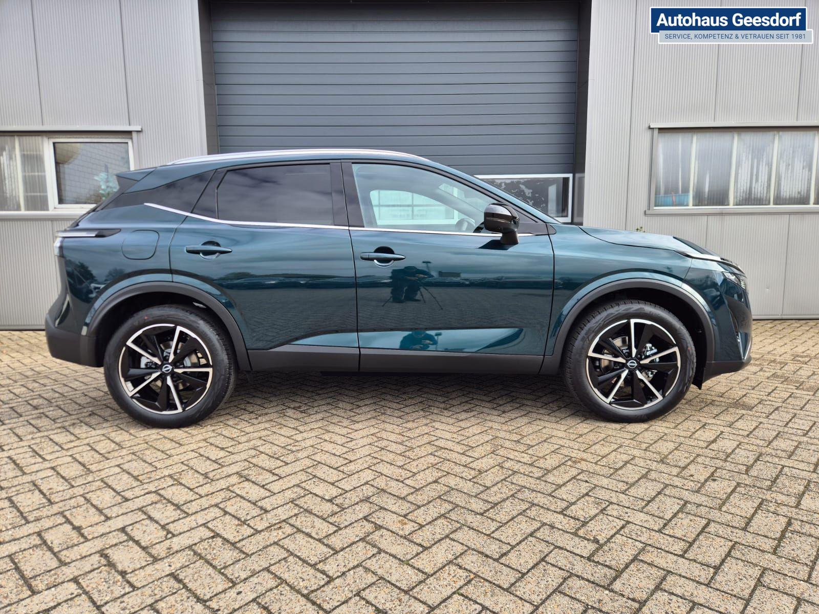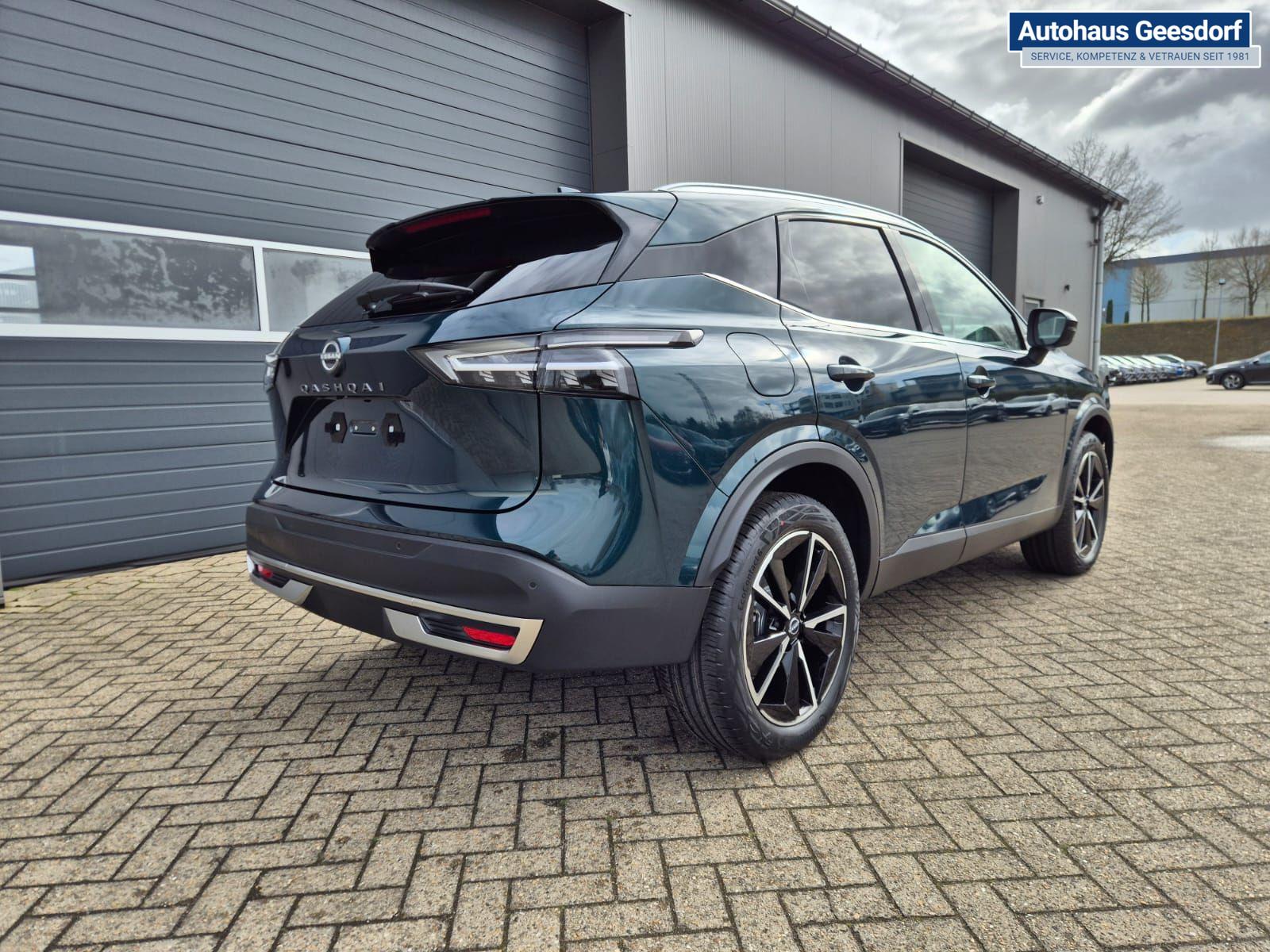Nissan Qashqai 1.3 DIG-T MHEV 158 PS X-Tronic Tekna Voll-Leder Klimaautomatik PanoGlasdach Sitzheizung Lenkradheizung Navi Head-Up Display elektr. Heckklappe ACC PDC v+h 360°Kamera DAB Bluetooth Touchscreen Apple CarPlay Android Auto 19"LM