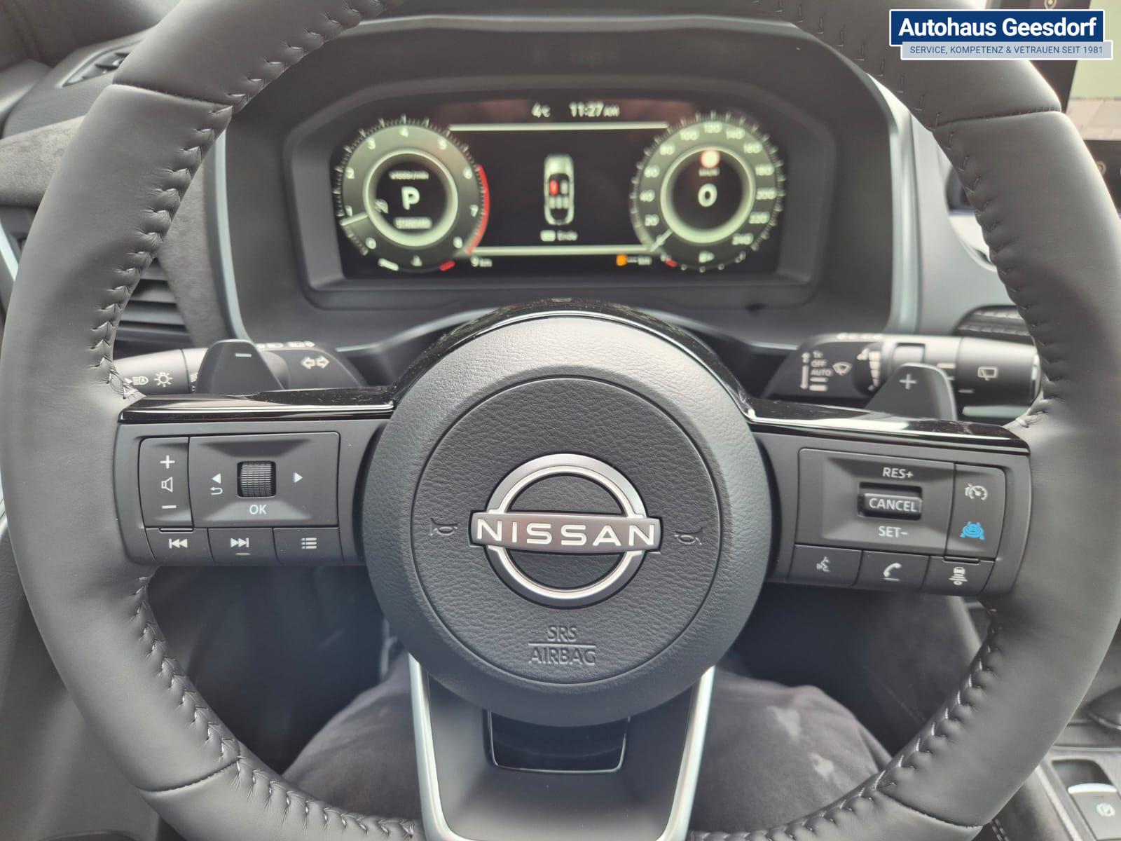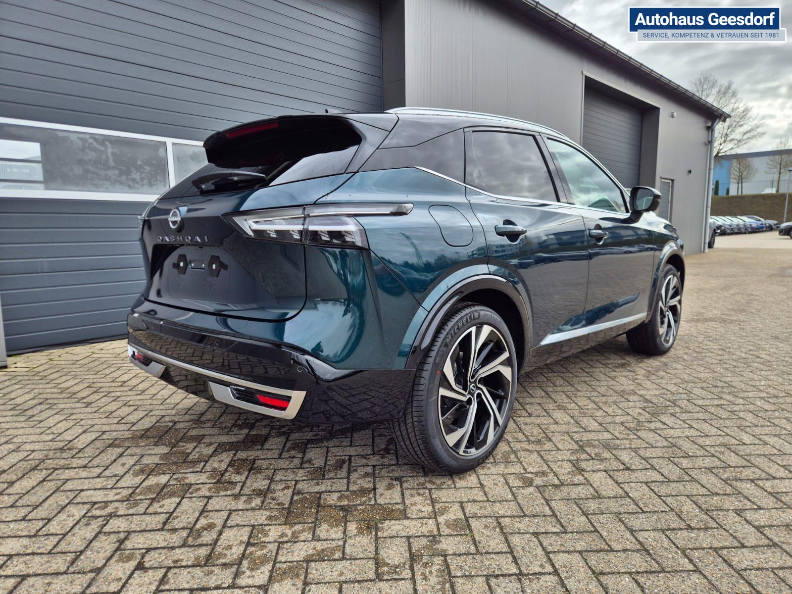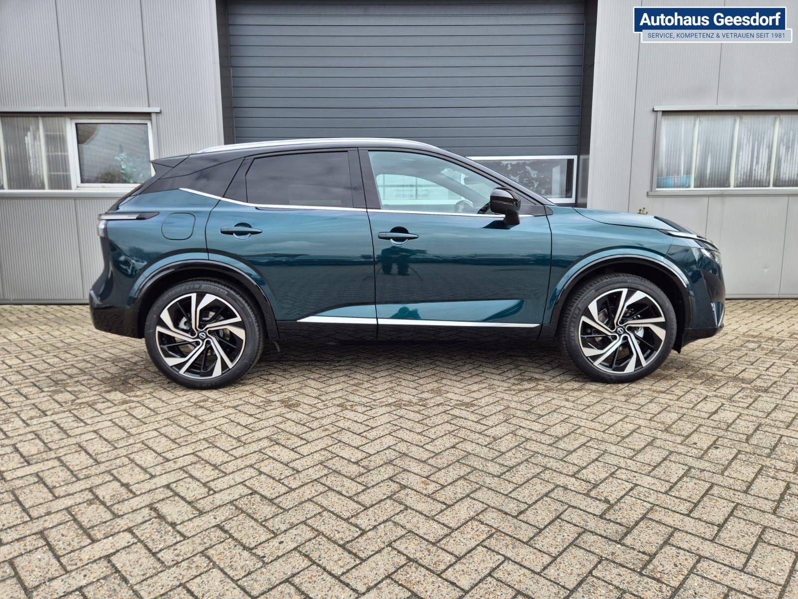Nissan Qashqai 1.3 DIG-T MHEV 158 PS X-Tronic Tekna Premium Paket 20"LM Teil-Leder PanoGlasdach Klimaautomatik Sitzheizung Lenkradheizung Navi Head-Up Display elektr. Heckklappe ACC PDC v+h 360°Kamera DAB Bluetooth Touchscreen Apple CarPlay Android Auto