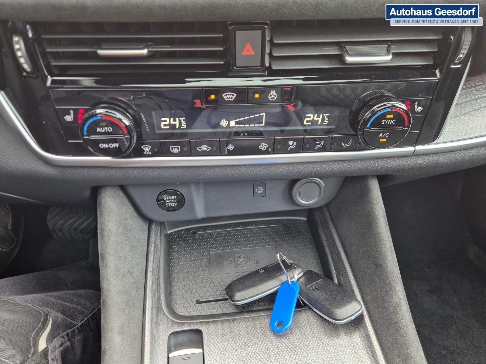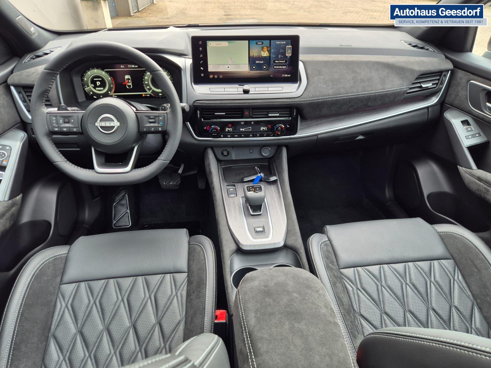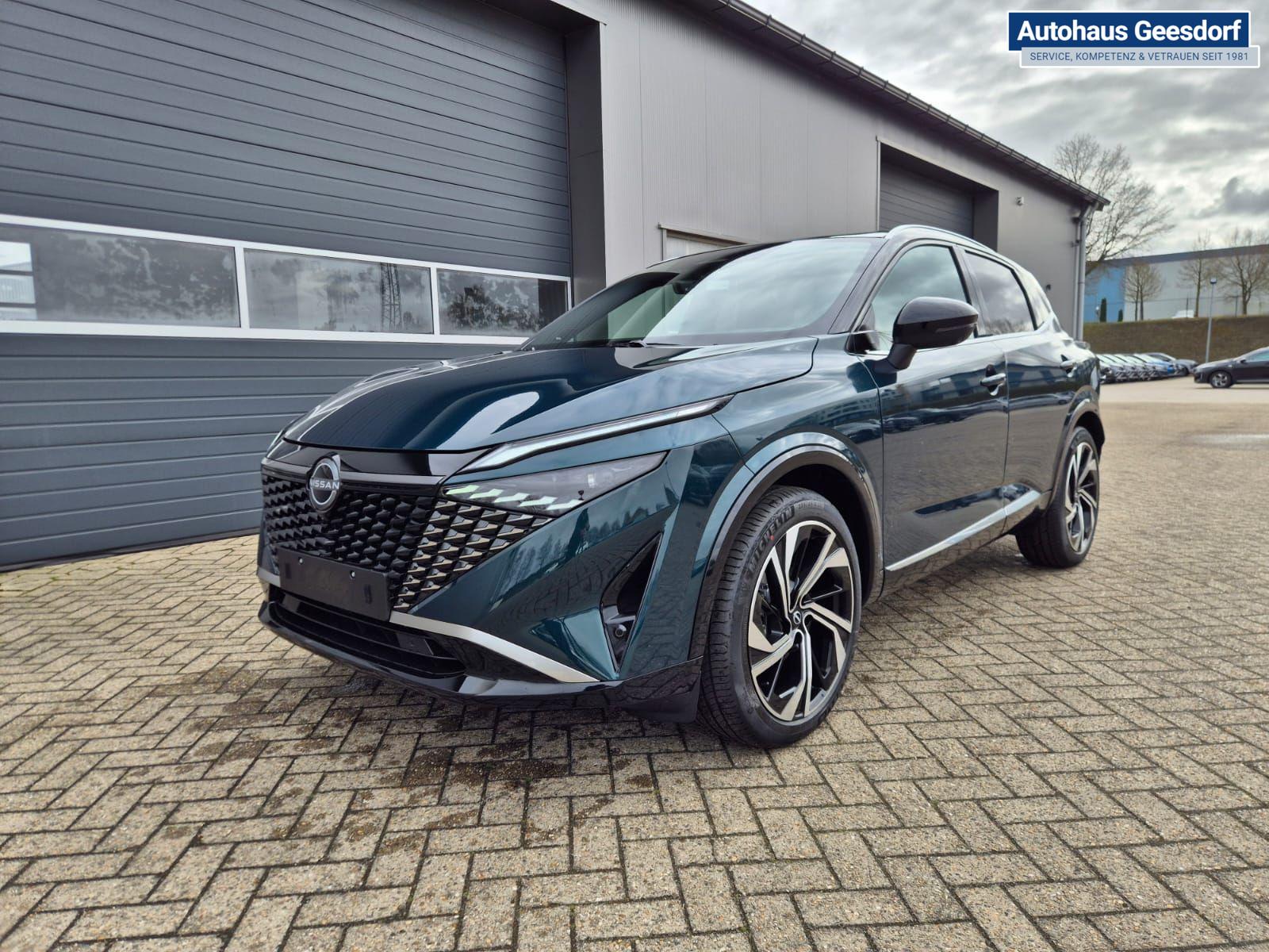 Nissan Qashqai 1.3 DIG-T MHEV 158 PS X-Tronic Tekna Premium Paket 20"LM Teil-Leder PanoGlasdach Klimaautomatik Sitzheizung Lenkradheizung Navi Head-Up Display elektr. Heckklappe ACC PDC v+h 360°Kamera DAB Bluetooth Touchscreen Apple CarPlay Android Auto