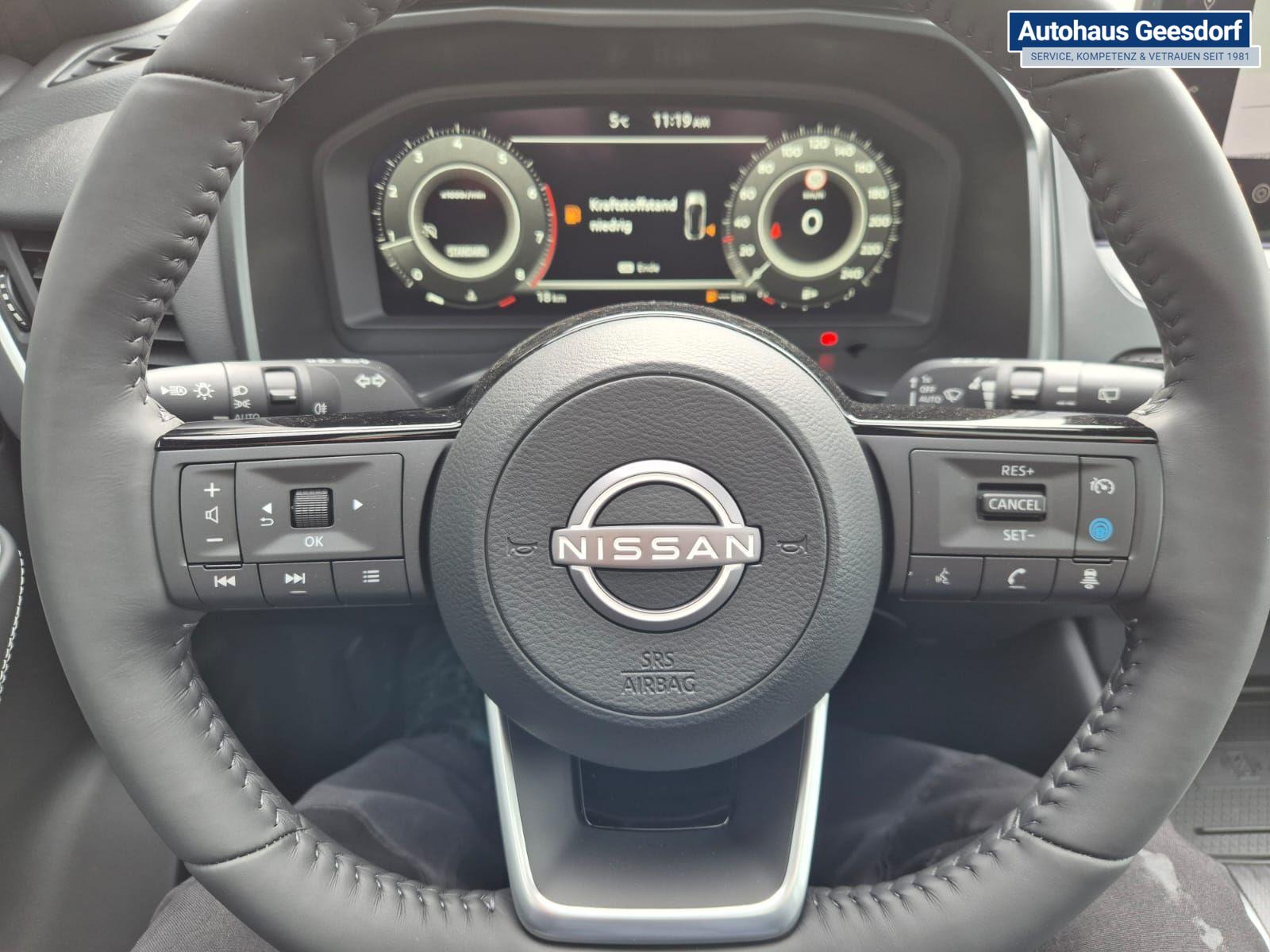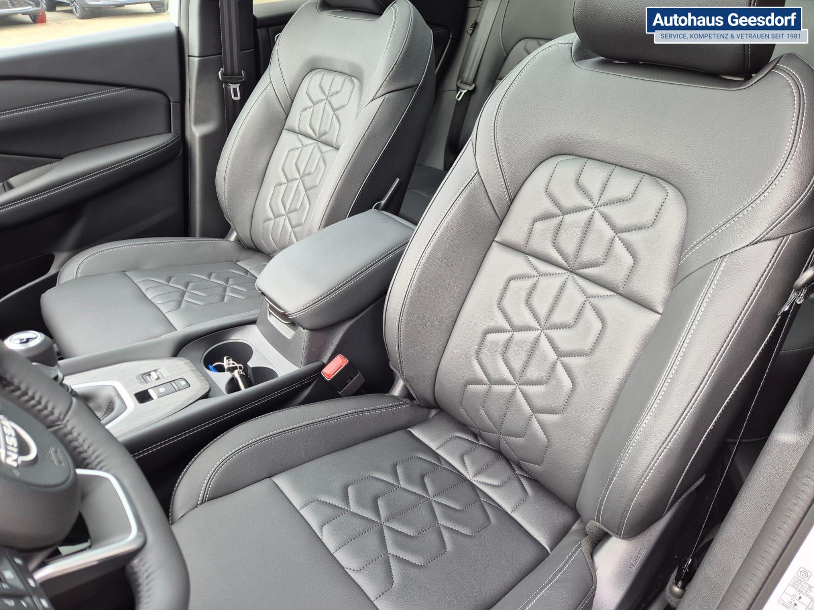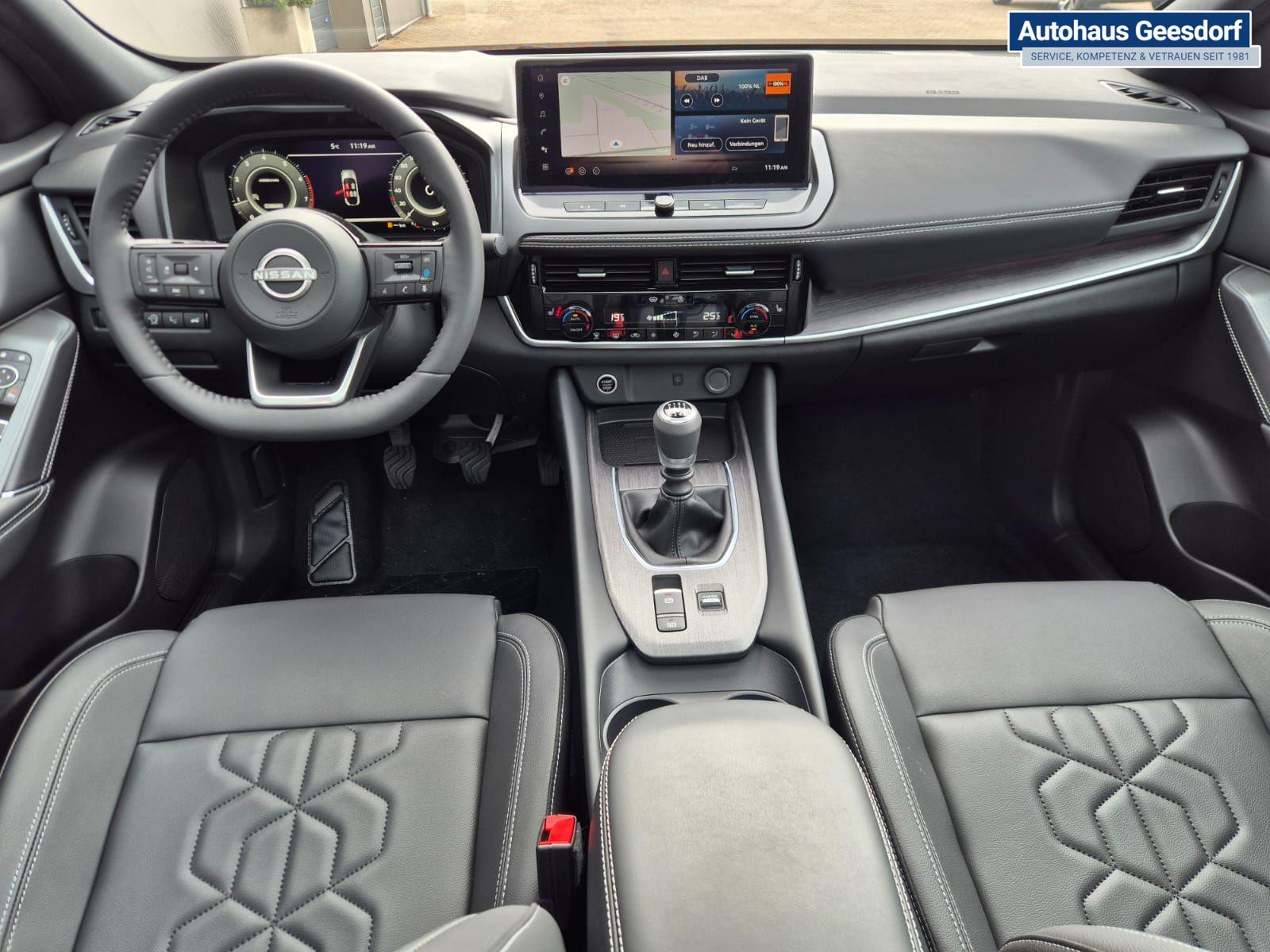 Nissan Qashqai 1.3 DIG-T MHEV 140PS Tekna Voll-Leder Klimaautomatik PanoGlasdach Sitzheizung Lenkradheizung Navi Head-Up Display elektr. Heckklappe ACC PDC v+h 360°Kamera DAB Bluetooth Touchscreen Apple CarPlay Android Auto 19"LM