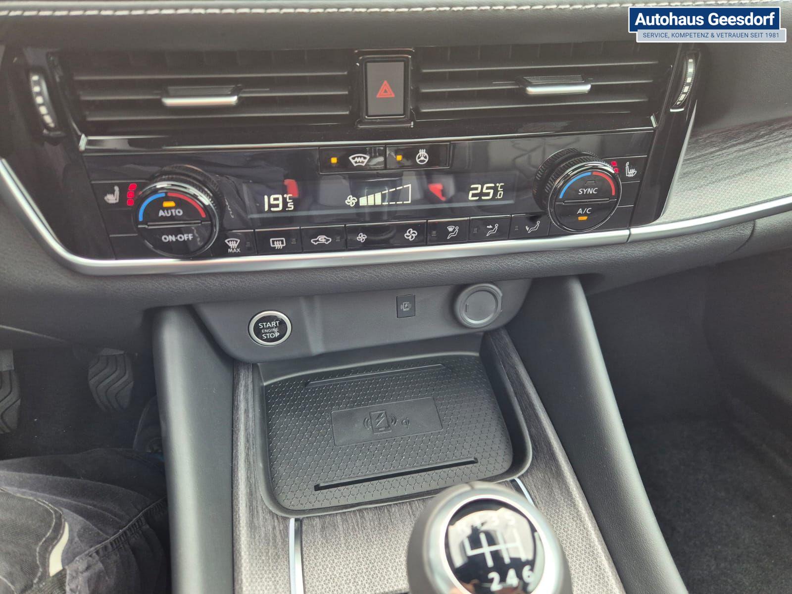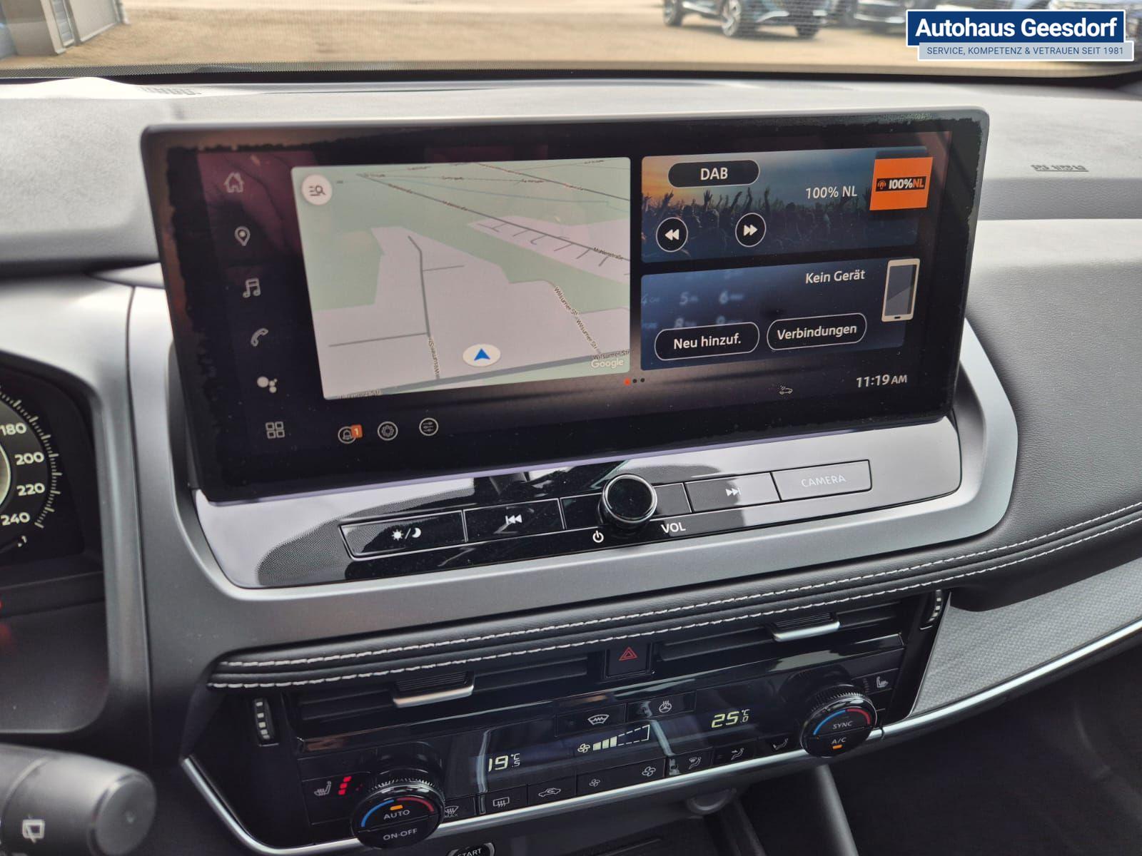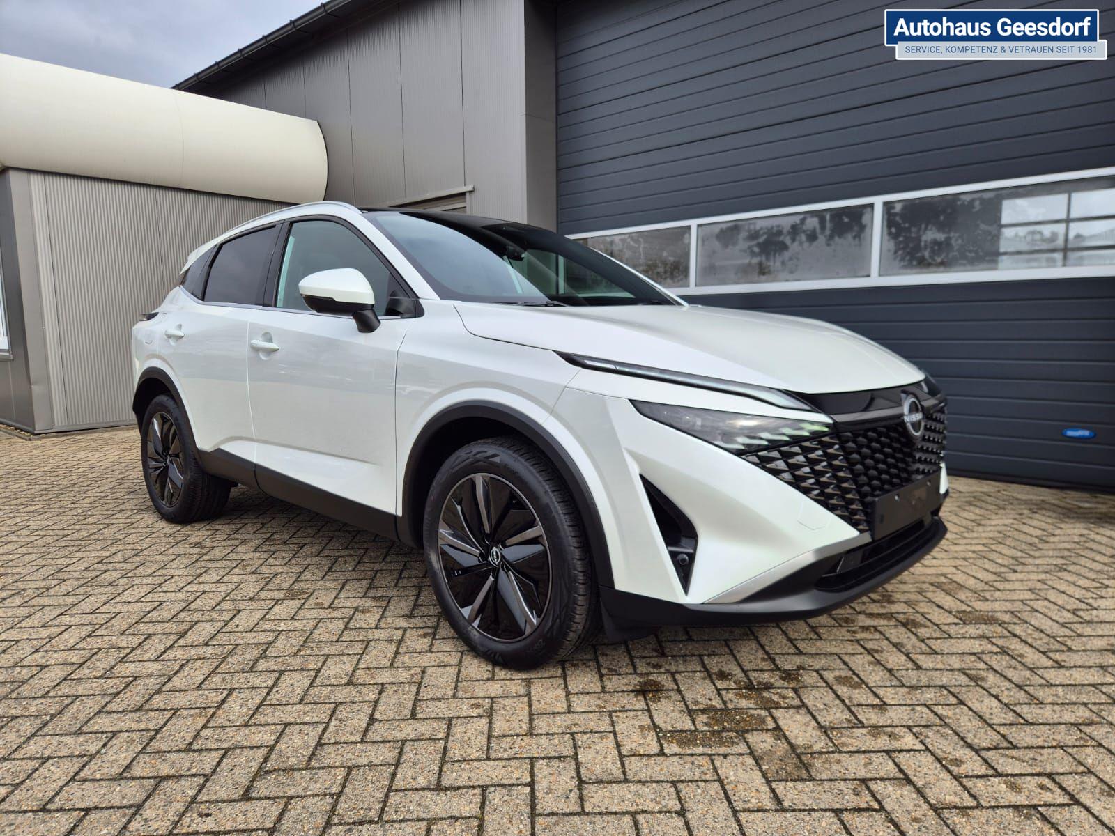 Nissan Qashqai 1.3 DIG-T MHEV 140PS Tekna Voll-Leder Klimaautomatik PanoGlasdach Sitzheizung Lenkradheizung Navi Head-Up Display elektr. Heckklappe ACC PDC v+h 360°Kamera DAB Bluetooth Touchscreen Apple CarPlay Android Auto 19"LM