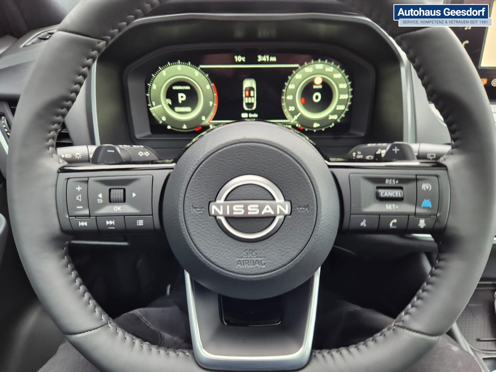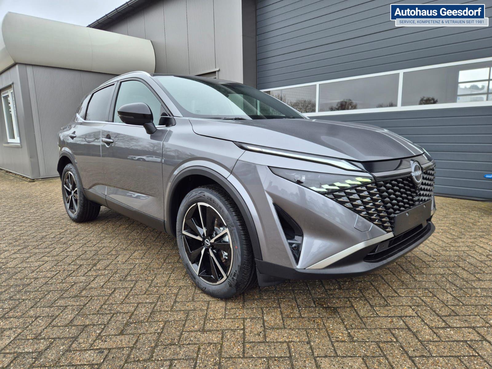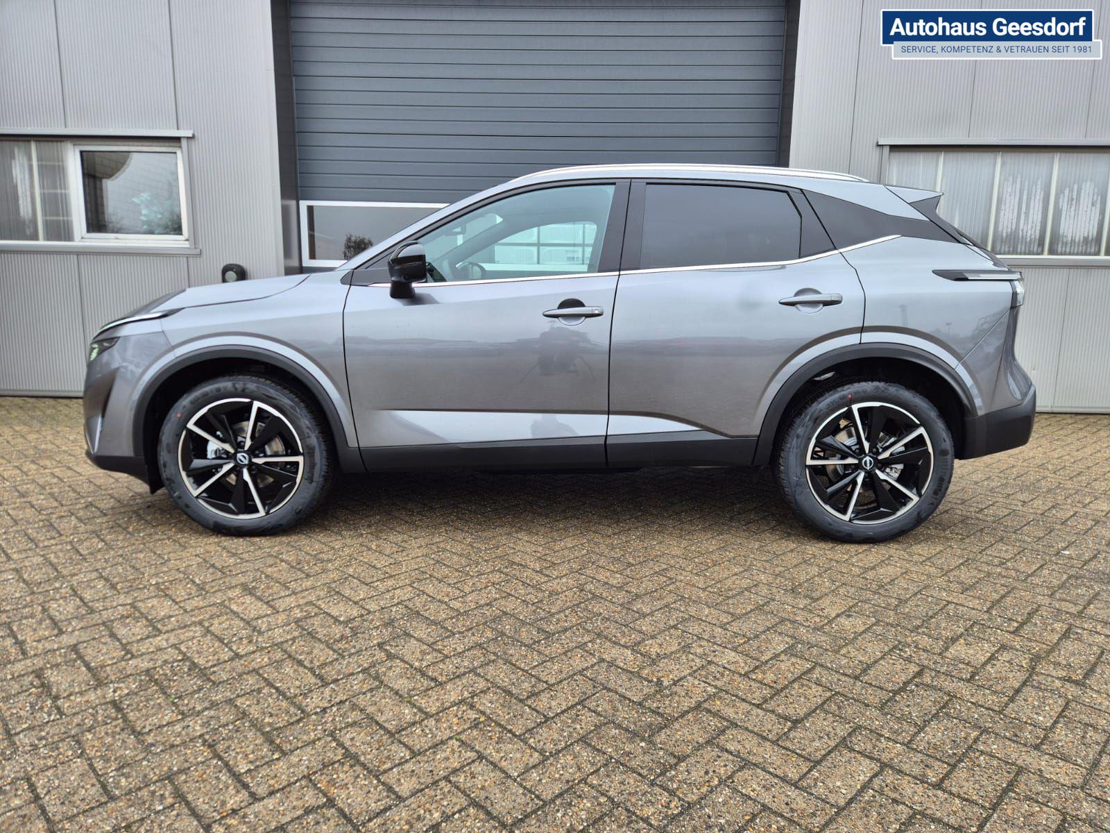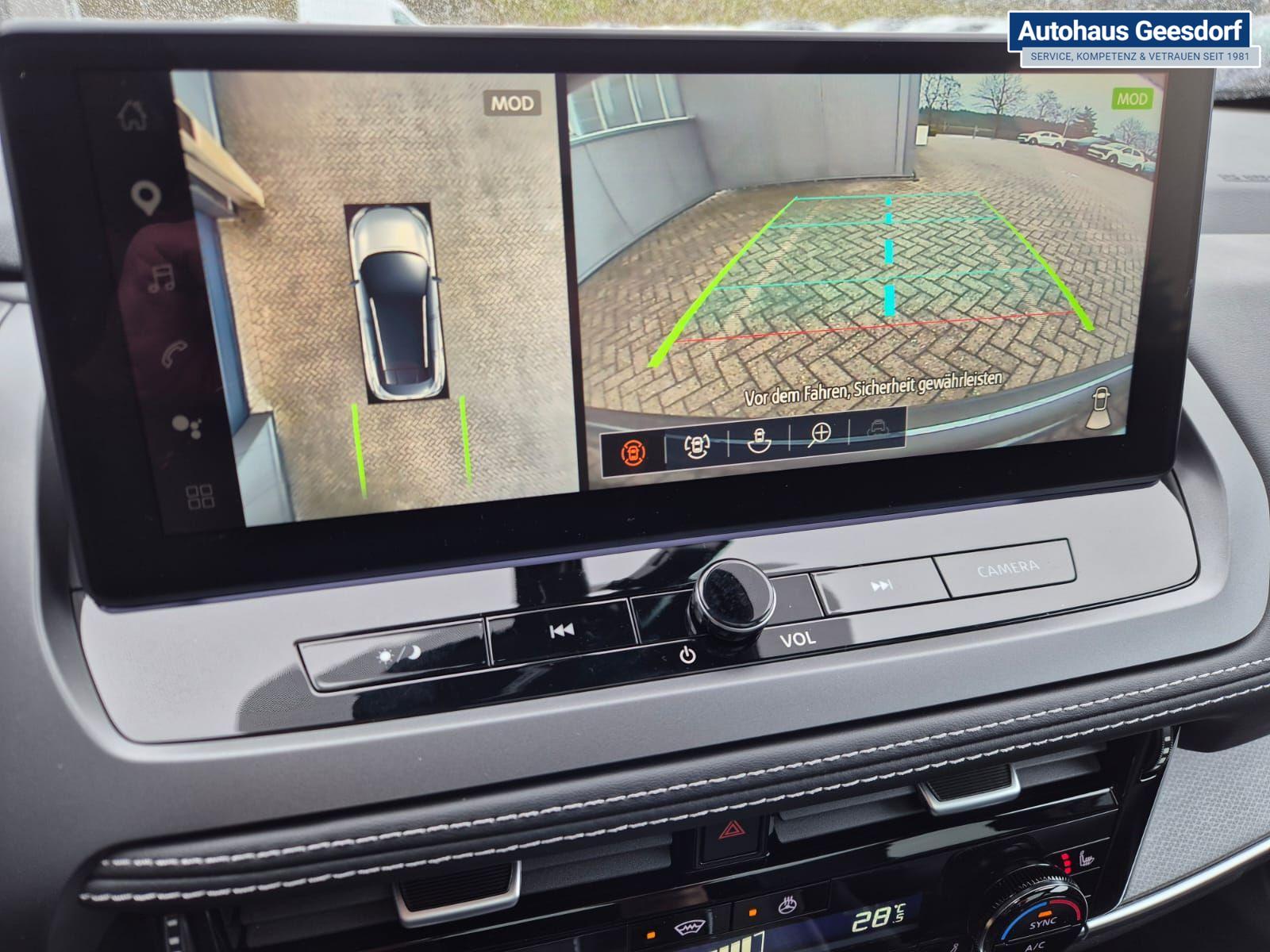 Nissan Qashqai 1.3 DIG-T MHEV 158 PS X-Tronic Tekna Voll-Leder Klimaautomatik PanoGlasdach Sitzheizung Lenkradheizung Navi Head-Up Display elektr. Heckklappe ACC PDC v+h 360°Kamera DAB Bluetooth Touchscreen Apple CarPlay Android Auto 19"LM