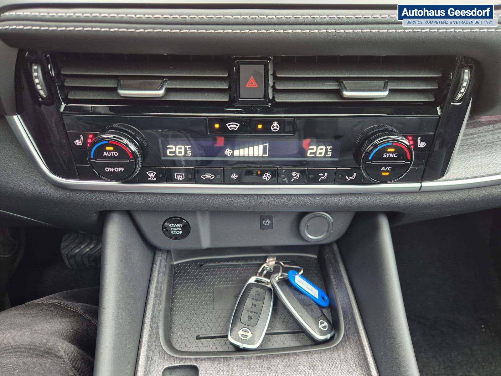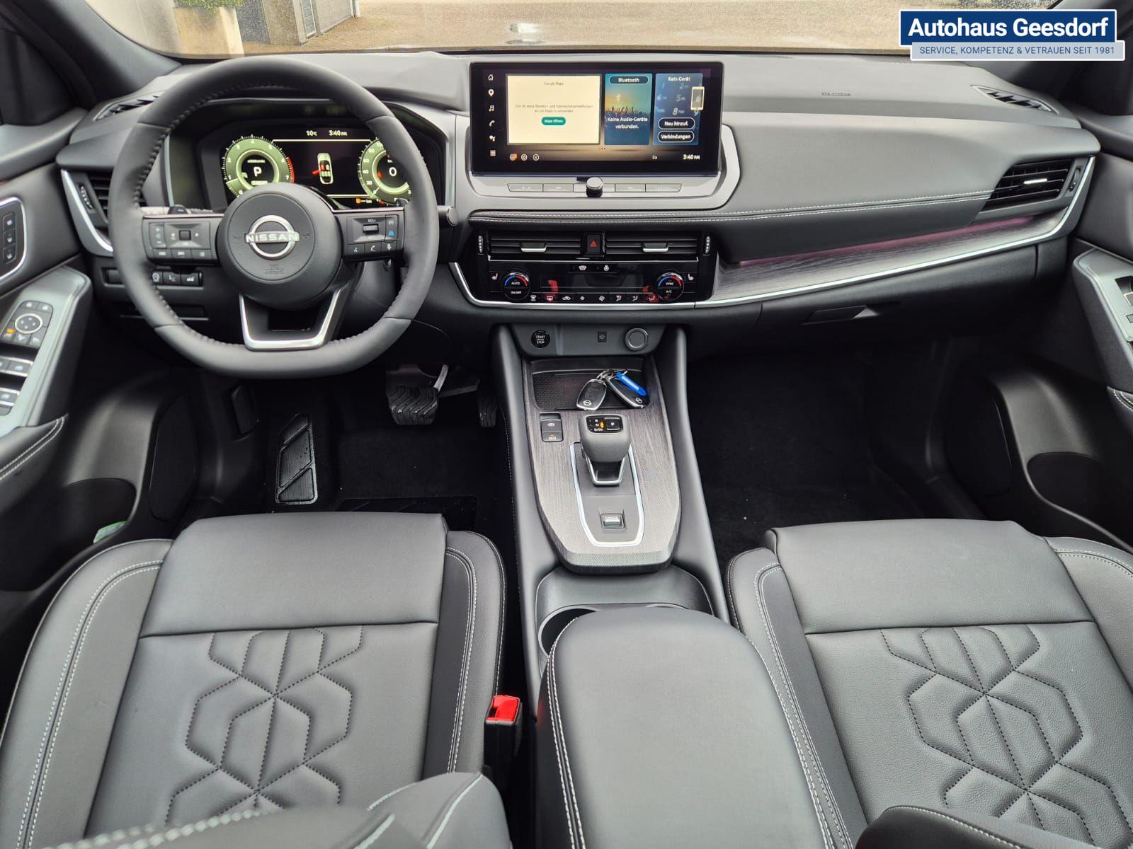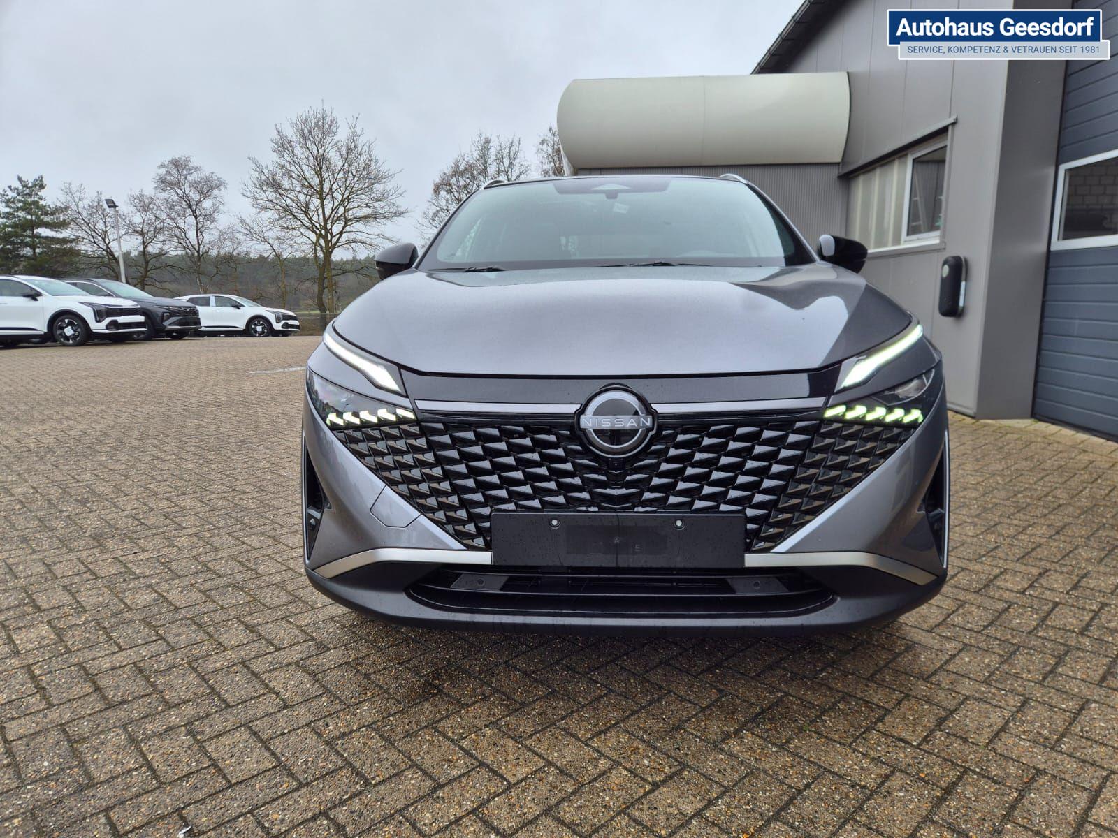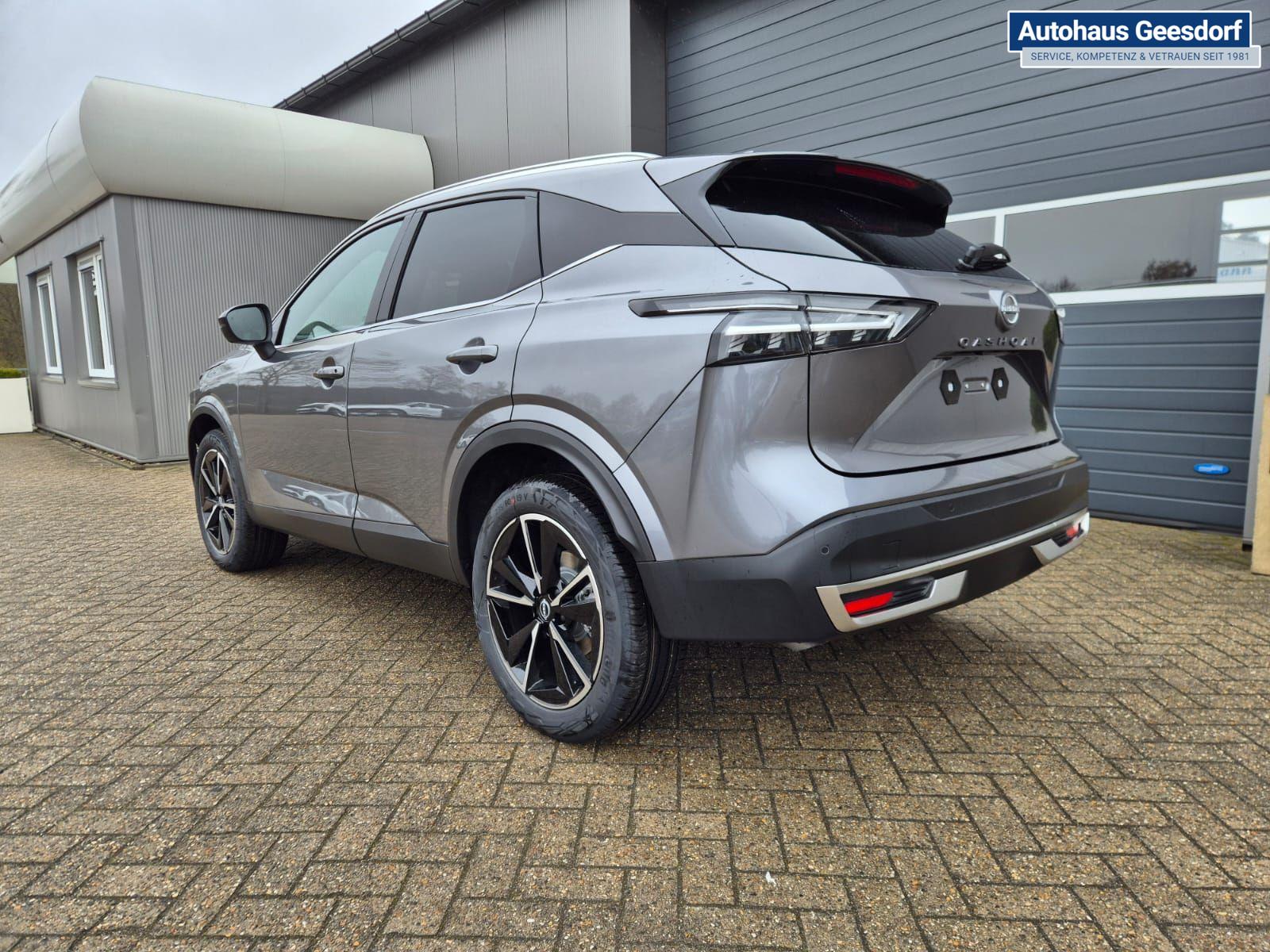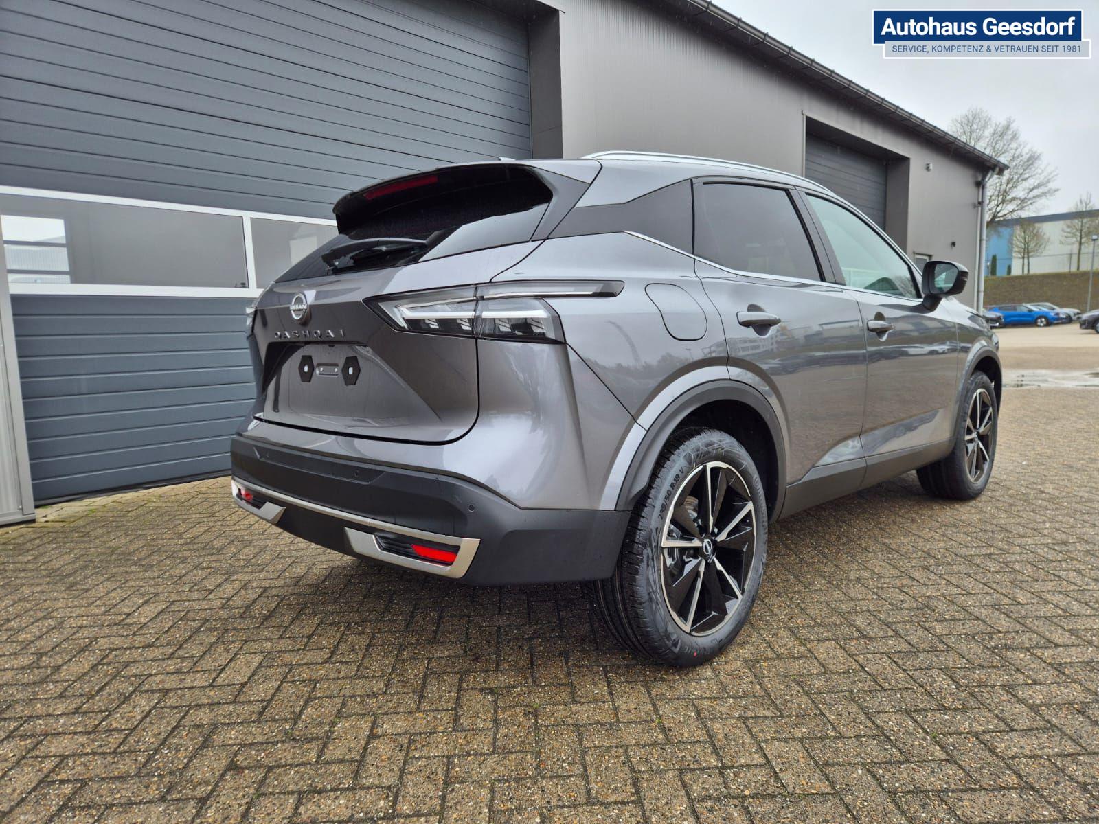 Nissan Qashqai 1.3 DIG-T MHEV 158 PS X-Tronic Tekna Voll-Leder Klimaautomatik PanoGlasdach Sitzheizung Lenkradheizung Navi Head-Up Display elektr. Heckklappe ACC PDC v+h 360°Kamera DAB Bluetooth Touchscreen Apple CarPlay Android Auto 19"LM