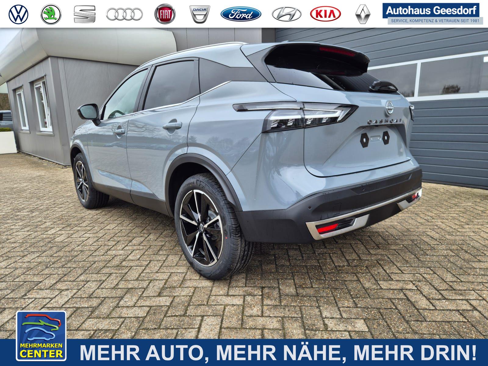 Nissan Qashqai 1.3 DIG-T MHEV 158 PS X-Tronic Tekna Voll-Leder Klimaautomatik PanoGlasdach Sitzheizung Lenkradheizung Navi Head-Up Display elektr. Heckklappe ACC PDC v+h 360°Kamera DAB Bluetooth Touchscreen Apple CarPlay Android Auto 19"LM