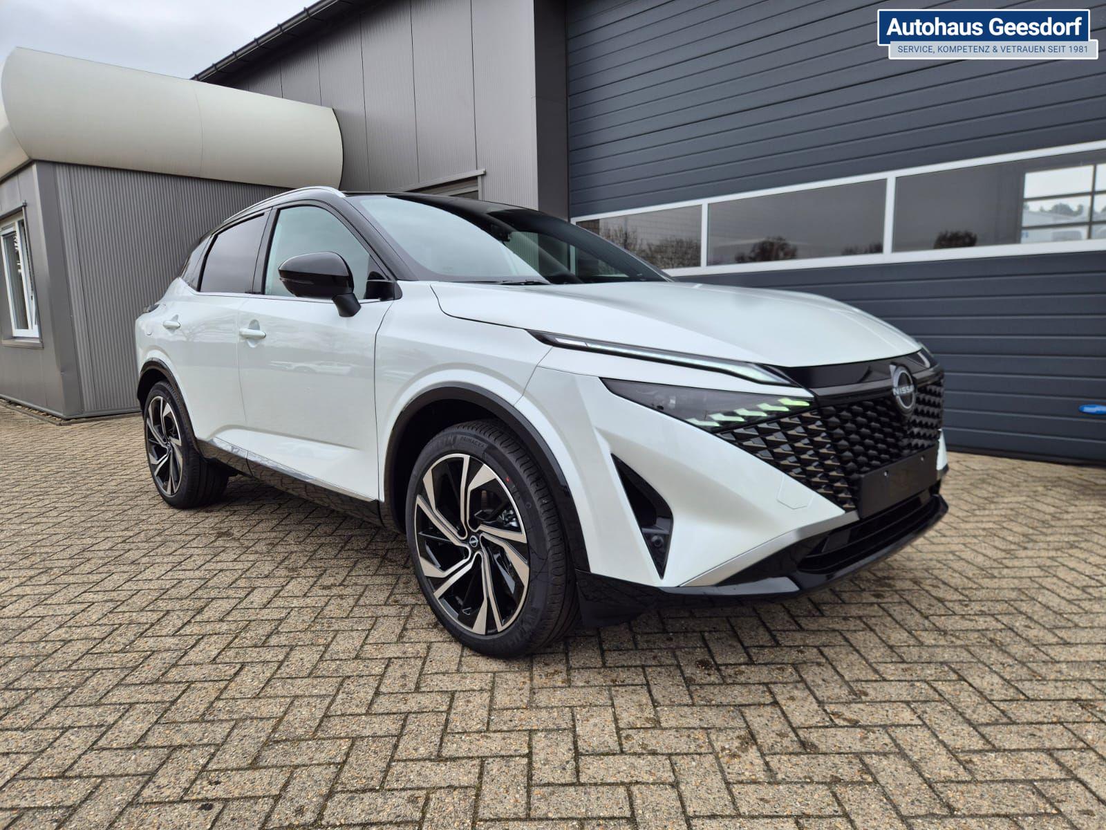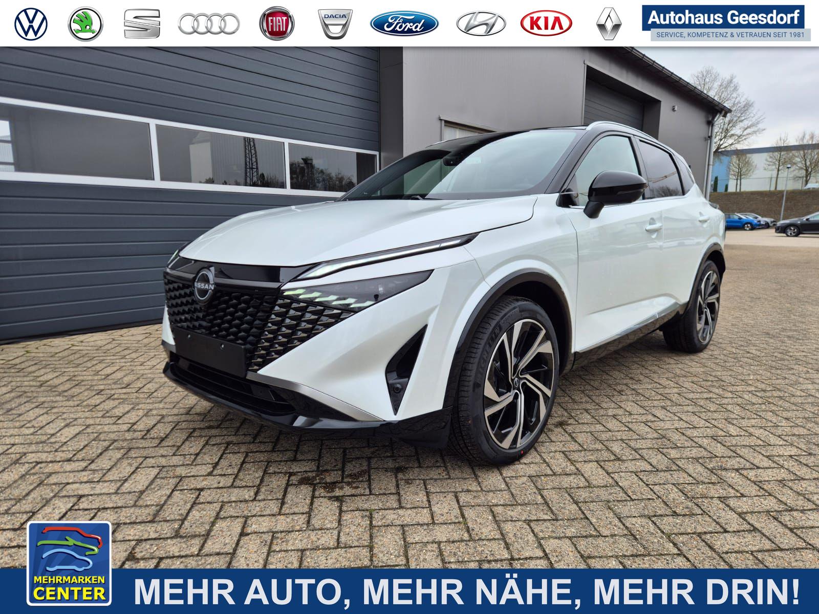 Nissan Qashqai 1.3 DIG-T MHEV 158 PS X-Tronic Tekna Premium Paket 20"LM Teil-Leder PanoGlasdach Klimaautomatik Sitzheizung Lenkradheizung Navi Head-Up Display elektr. Heckklappe ACC PDC v+h 360°Kamera DAB Bluetooth Touchscreen Apple CarPlay Android Auto